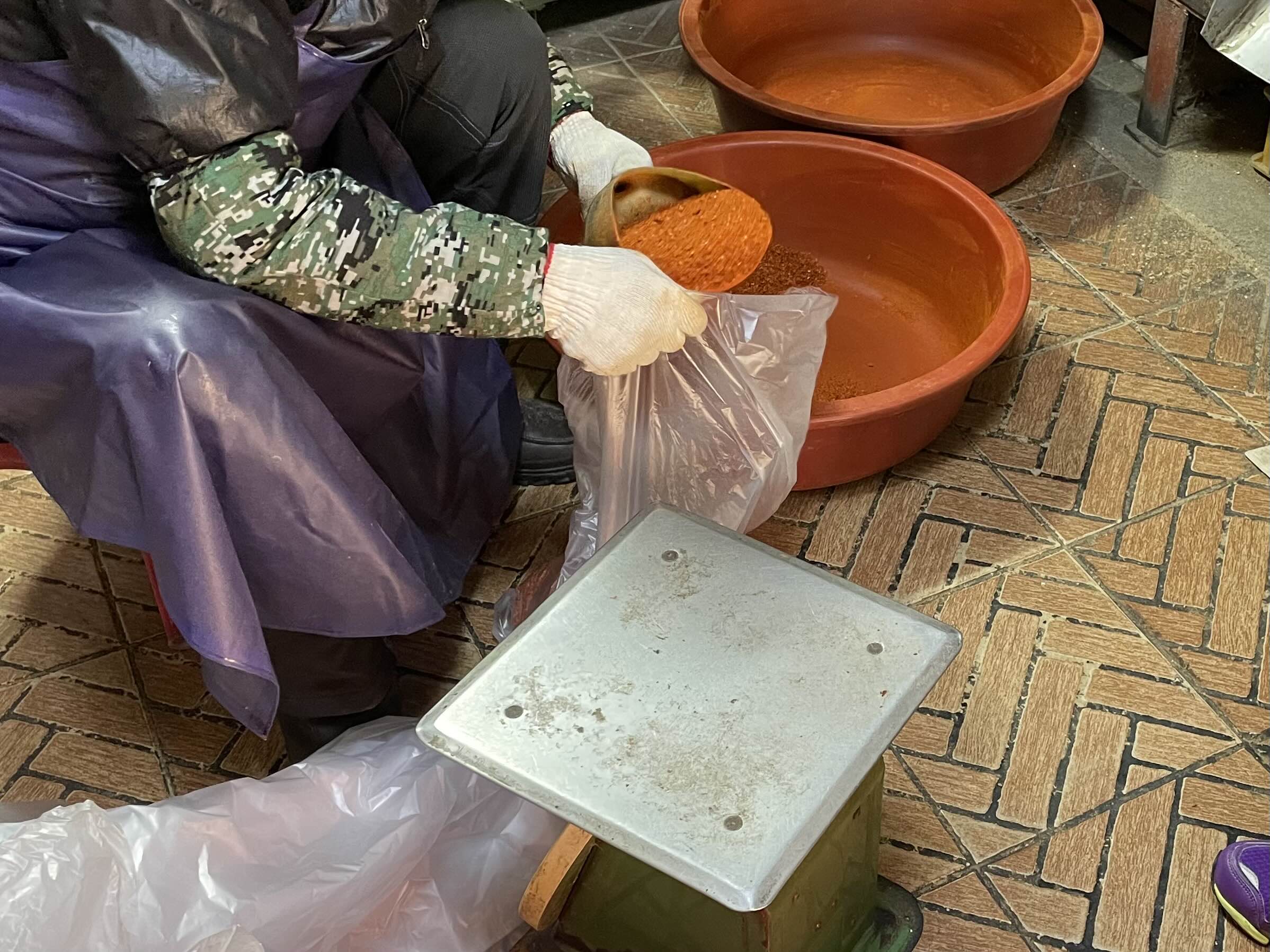 오른쪽의 고운 고춧가루는 6번 정도 빻아야 한다고 해요.