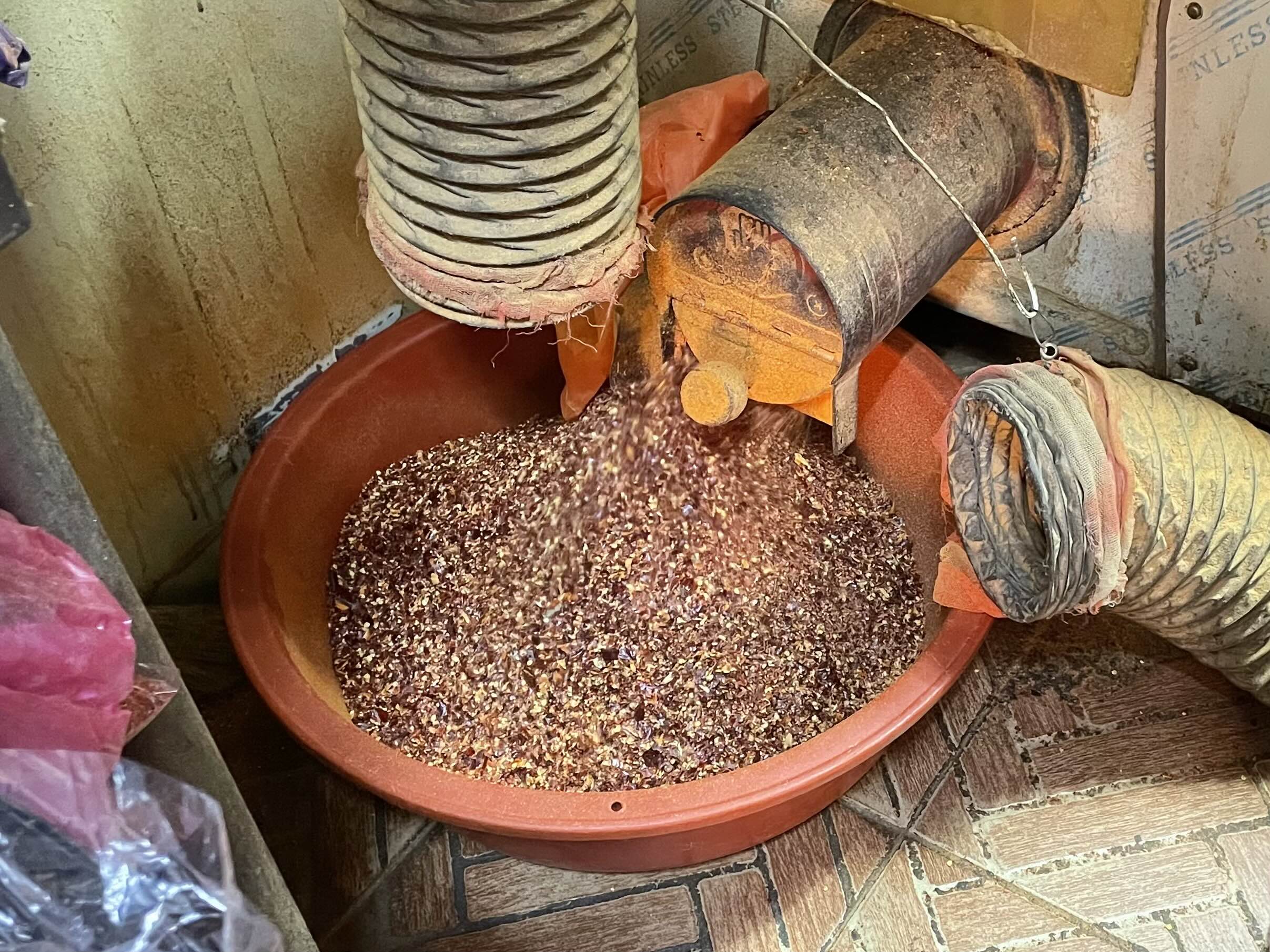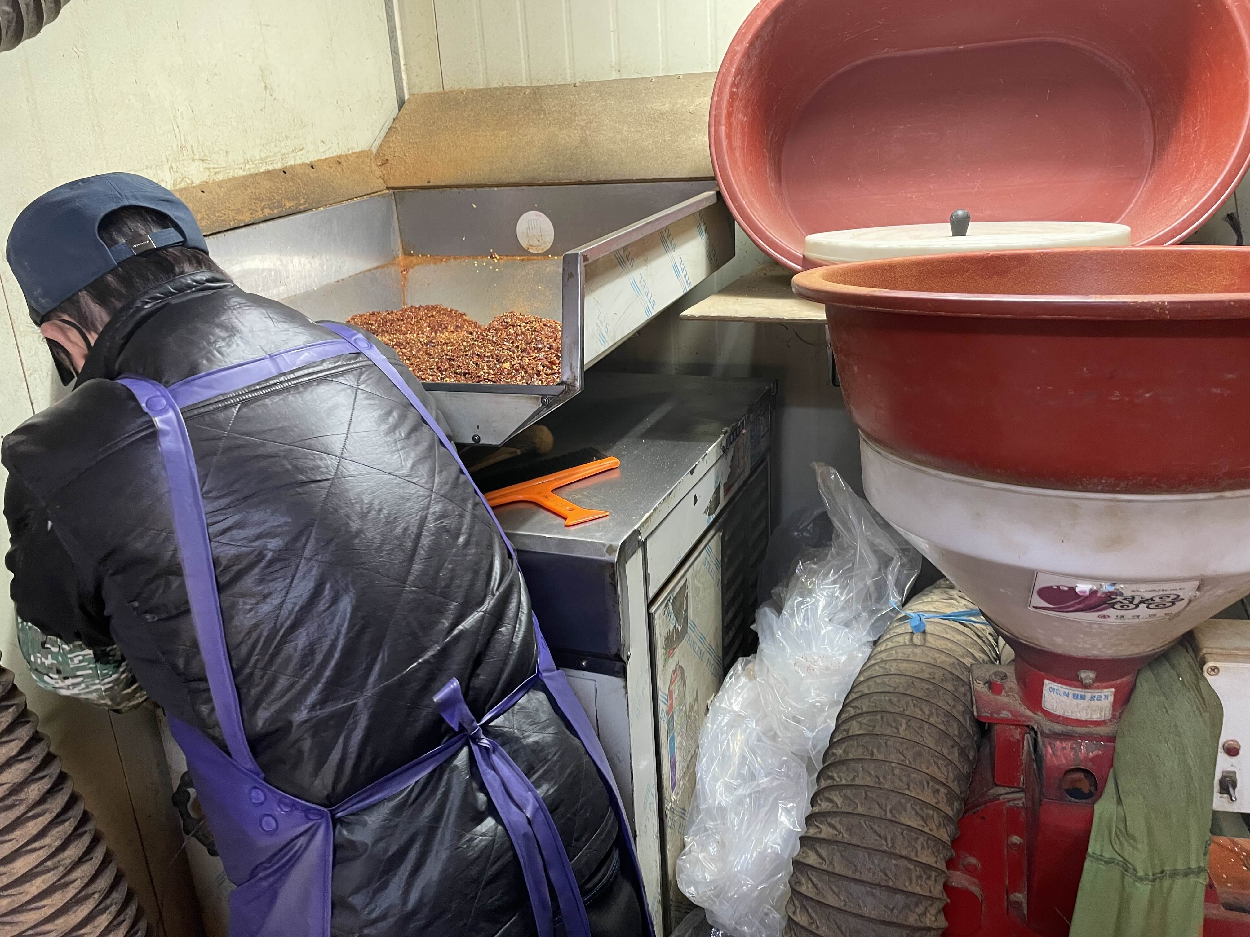 왜 그러냐고 여쭤보니 고추가 너무 바싹 마르면 제대로 빻아지지 않는다고 하시네요.