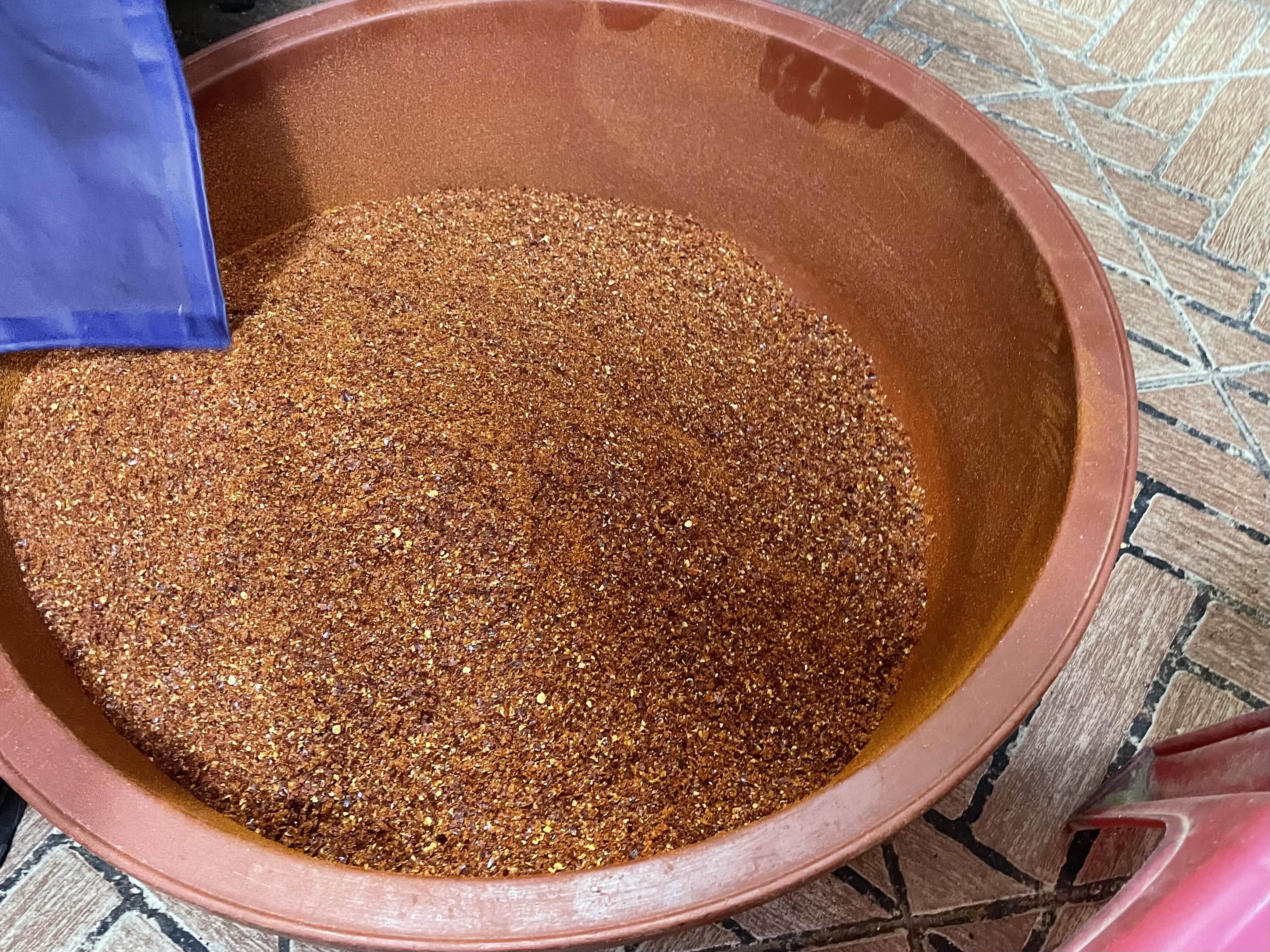 뭔가 처음보다 빨간색이 많이 보이는게 고추가루랑 비슷해지고 있는 거 같아요.