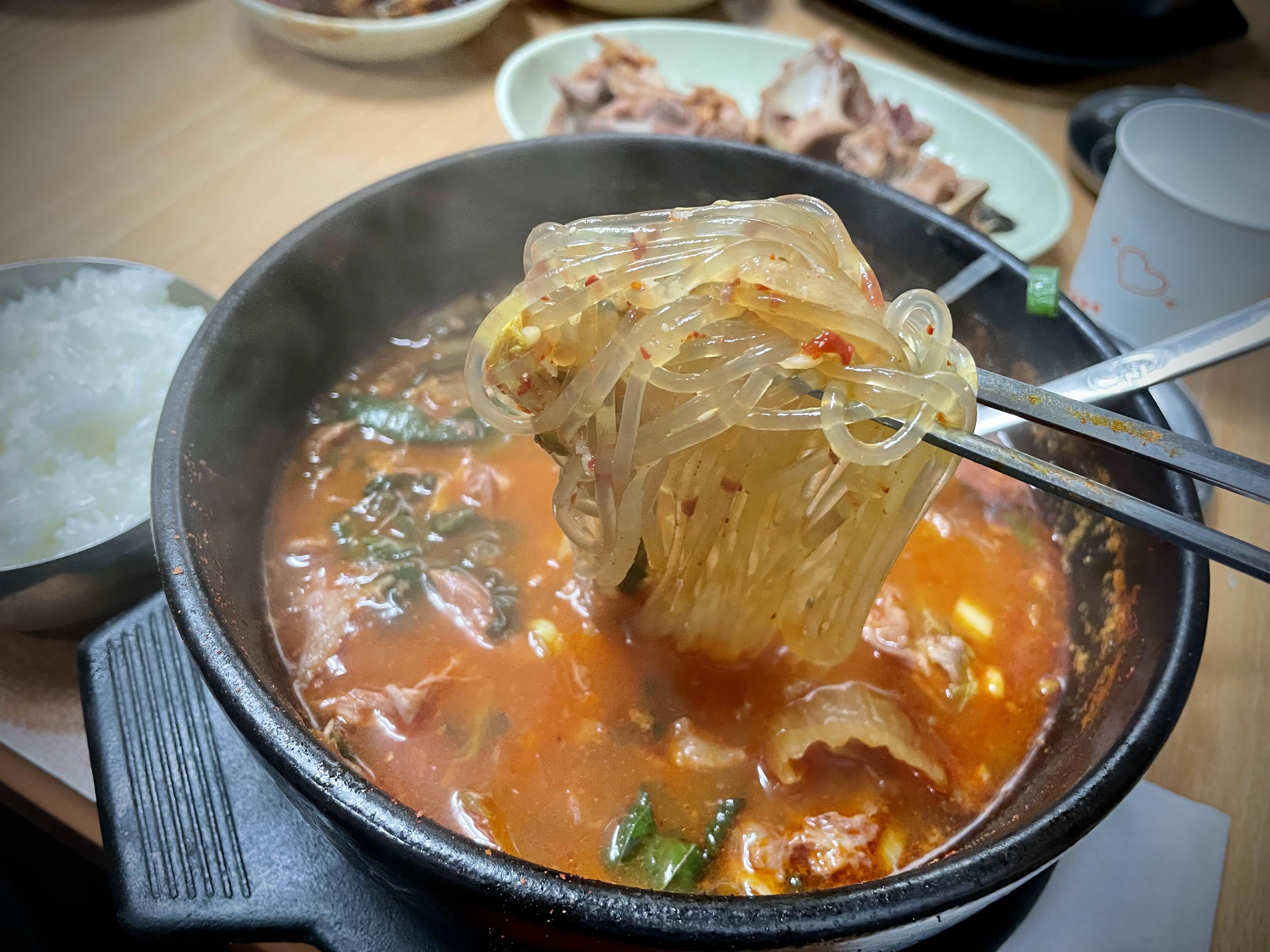 뼈다귀 해장국 속에는 당면도 들어가 있어서 더욱더 풍부한 맛의 뼈다귀해장국을 즐길 수 있습니다.