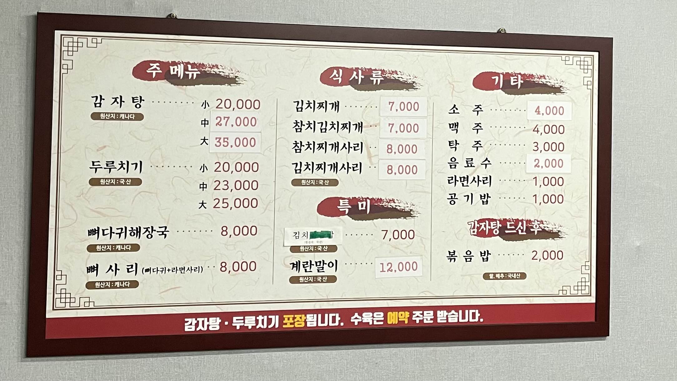 감자탕, 두루치기, 김치찌개, 뼈다귀해장국이 있는데요.