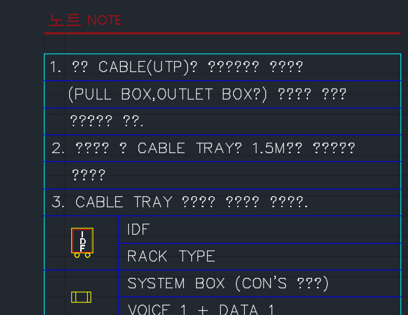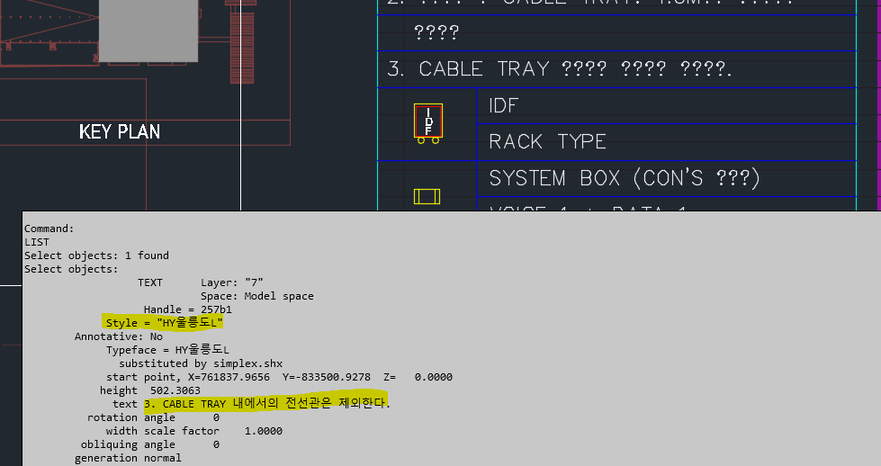 바로 도면 상에 표기된 한글 폰트가 해당 컴퓨터에 설치되어 있지 않기 때문입니다.