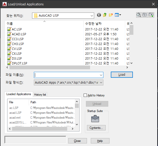 2. 캐드 실행 후 한글이 깨진 도면에서 fc.lsp 를 Load 합니다.