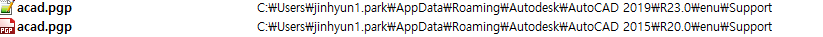 - AutoCAD2019 = c:\Users\사용자이름\AppData\Roaming\Autodesk\AutoCAD 2019\R23.0\enu\Support