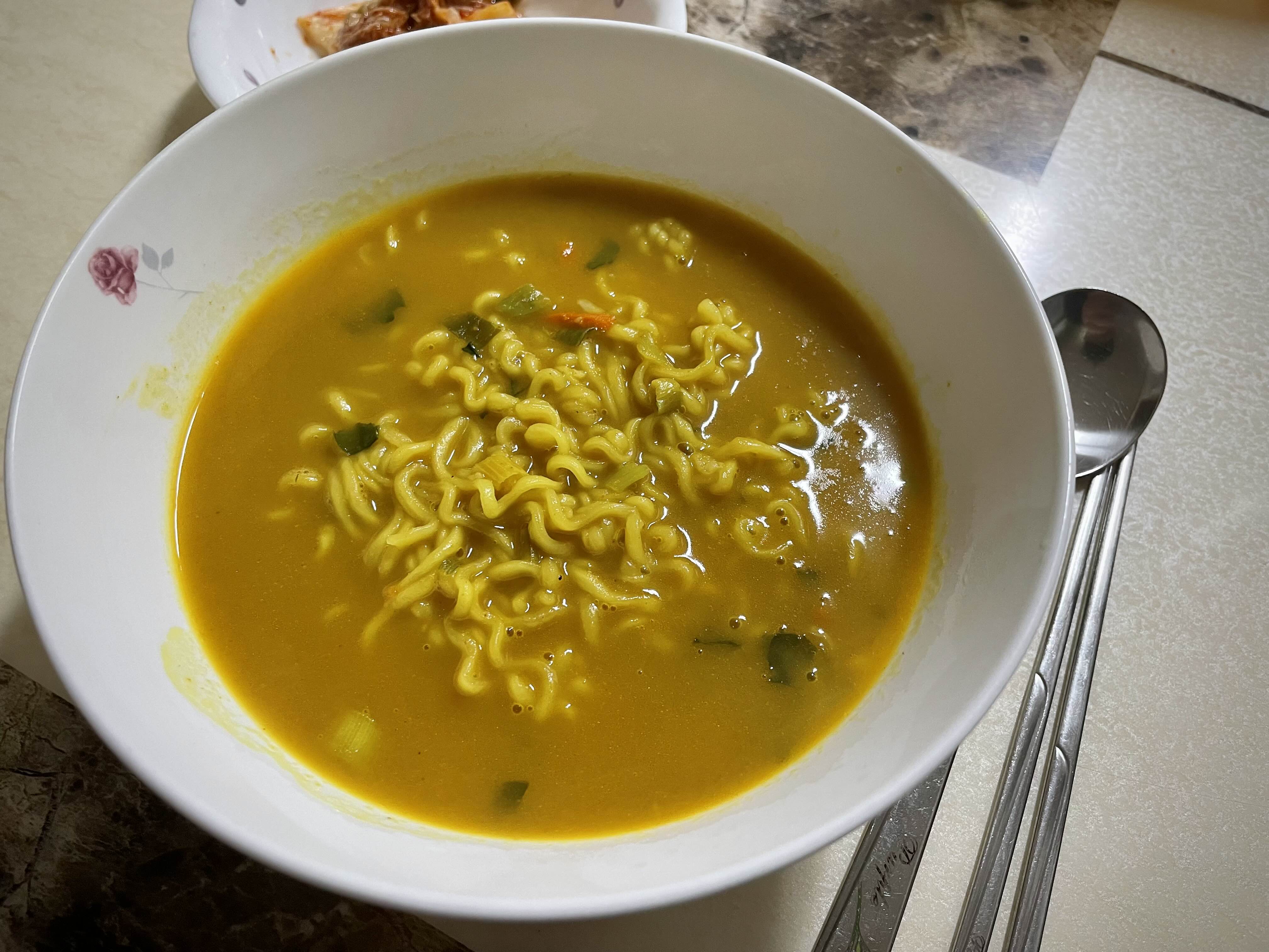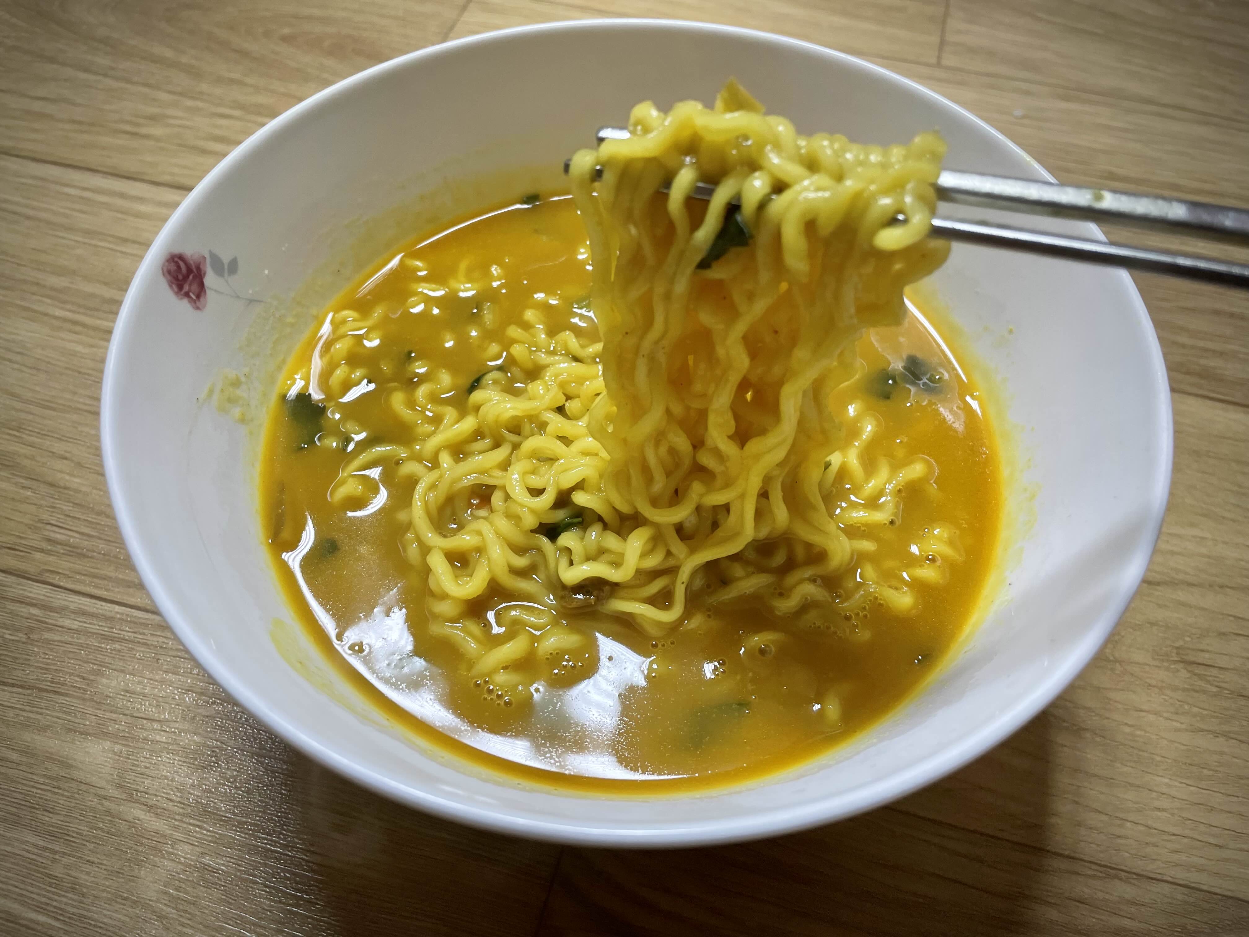 - 카레맛이 나야하기 때문에 스프가 강하지 않은 라면이 어울린다고 해요.