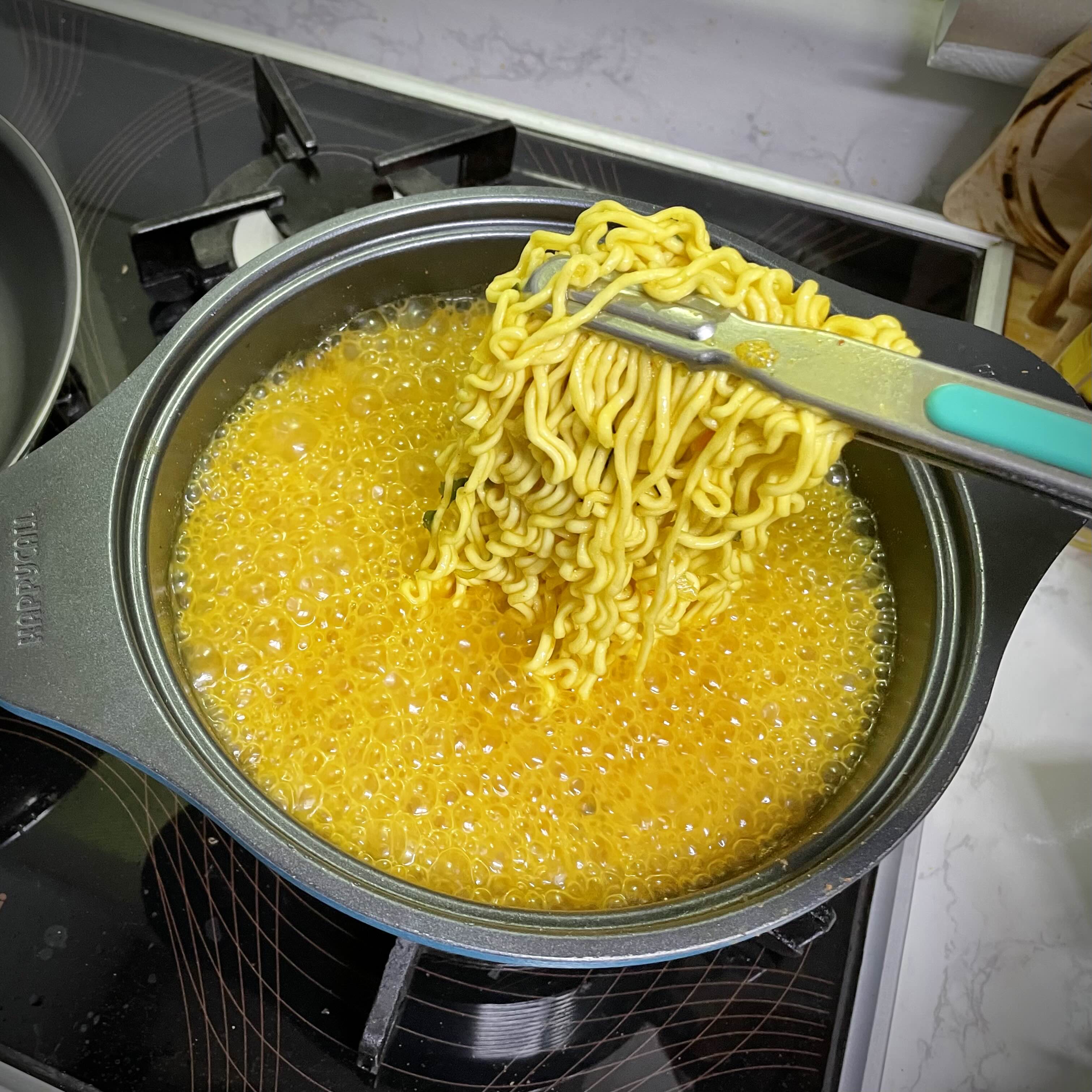 4. 카레가 다 풀어져서 끓으면 면을 넣어주세요.