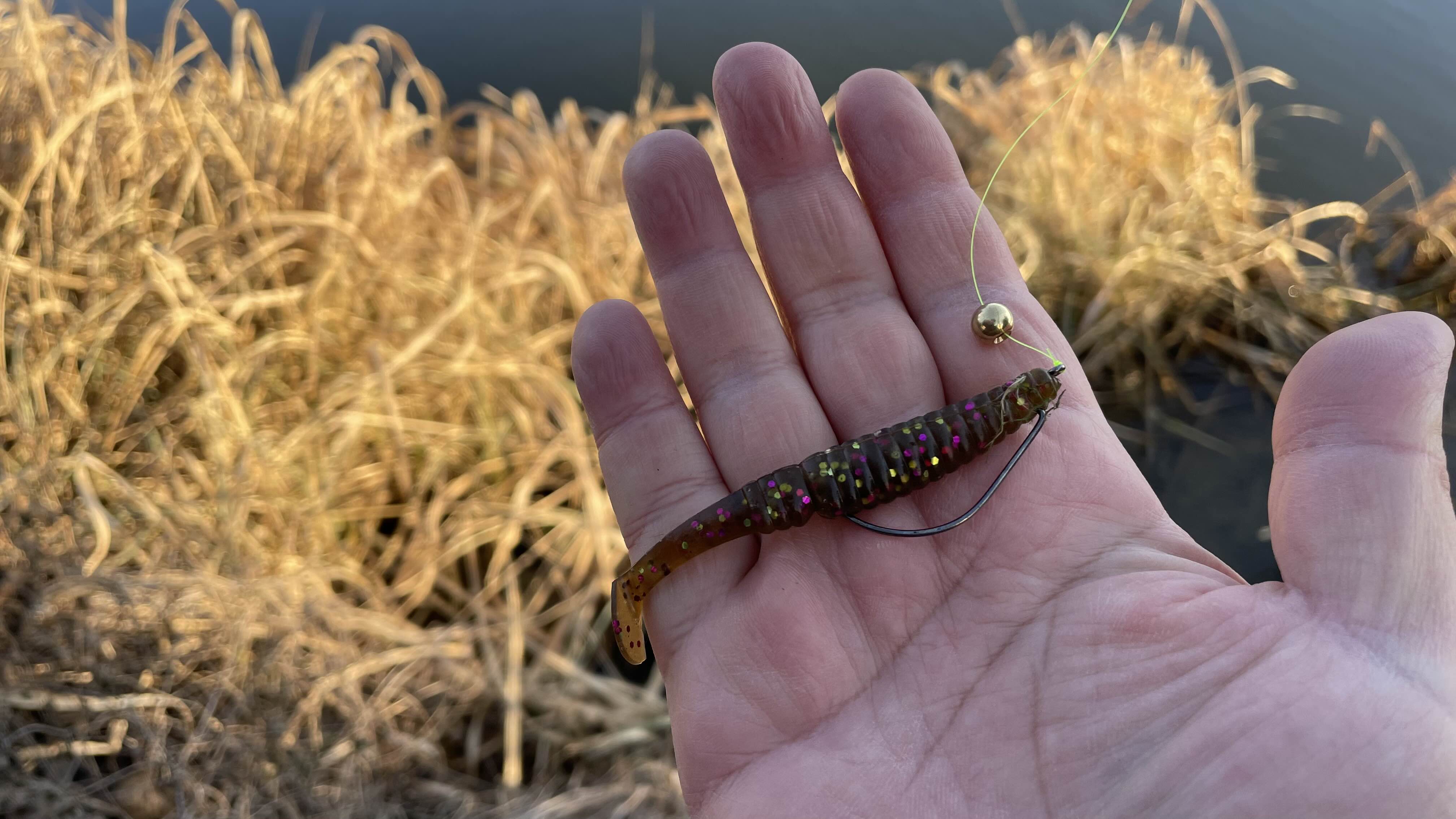 그래서 28g 봉돌에 스트레이트 웜을 달고 H 대로 힘껏 휘둘렀습니다.