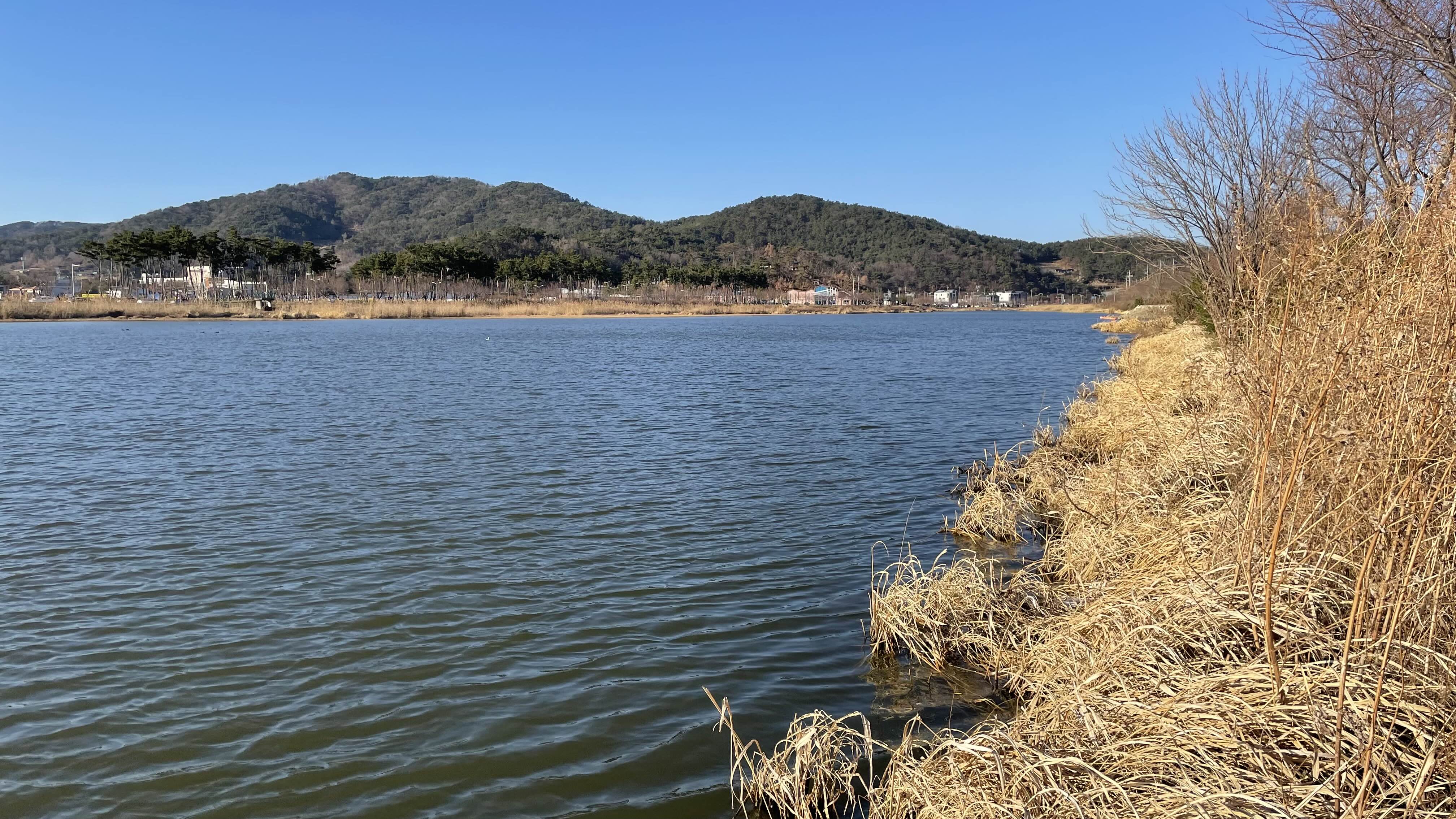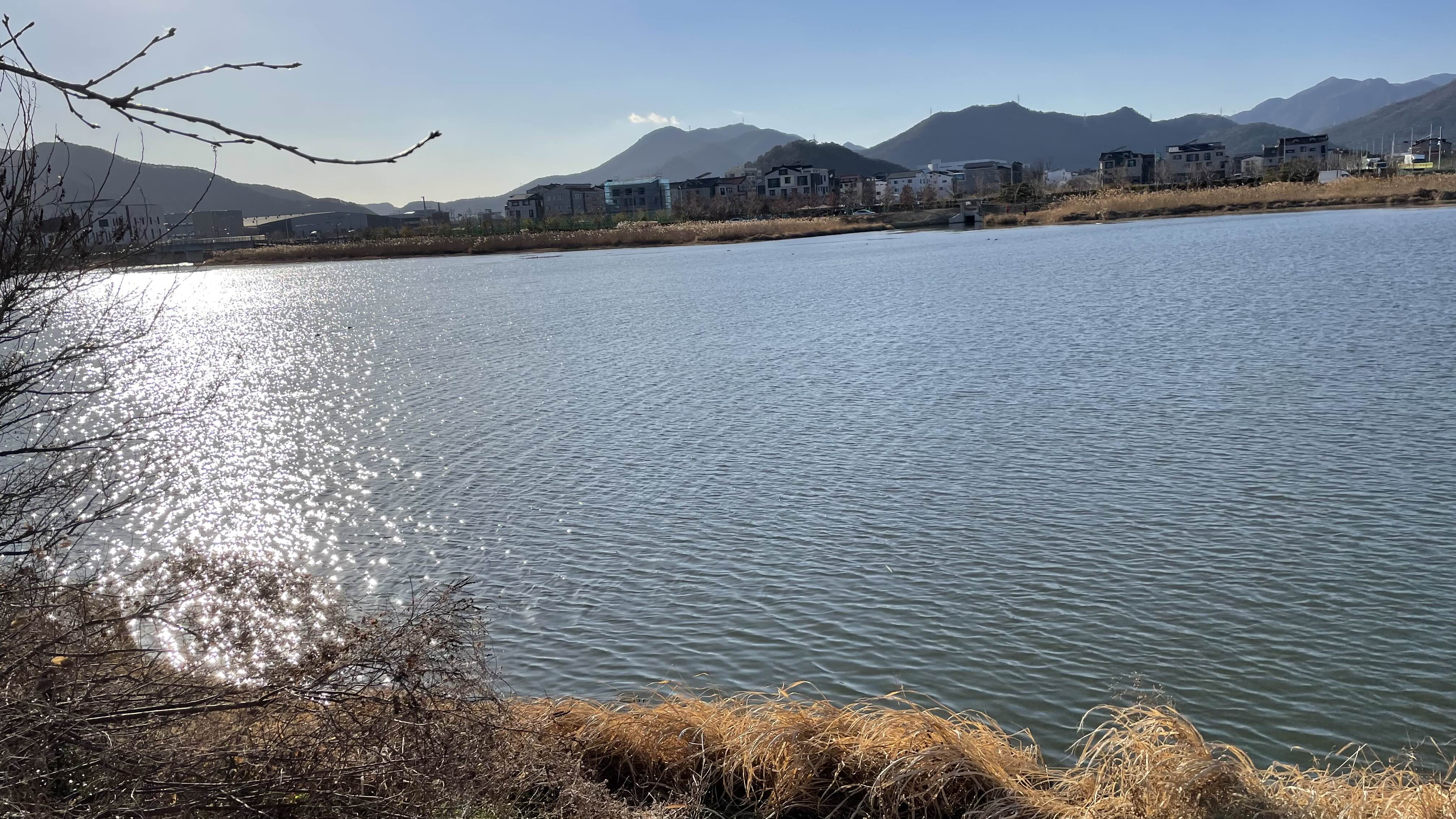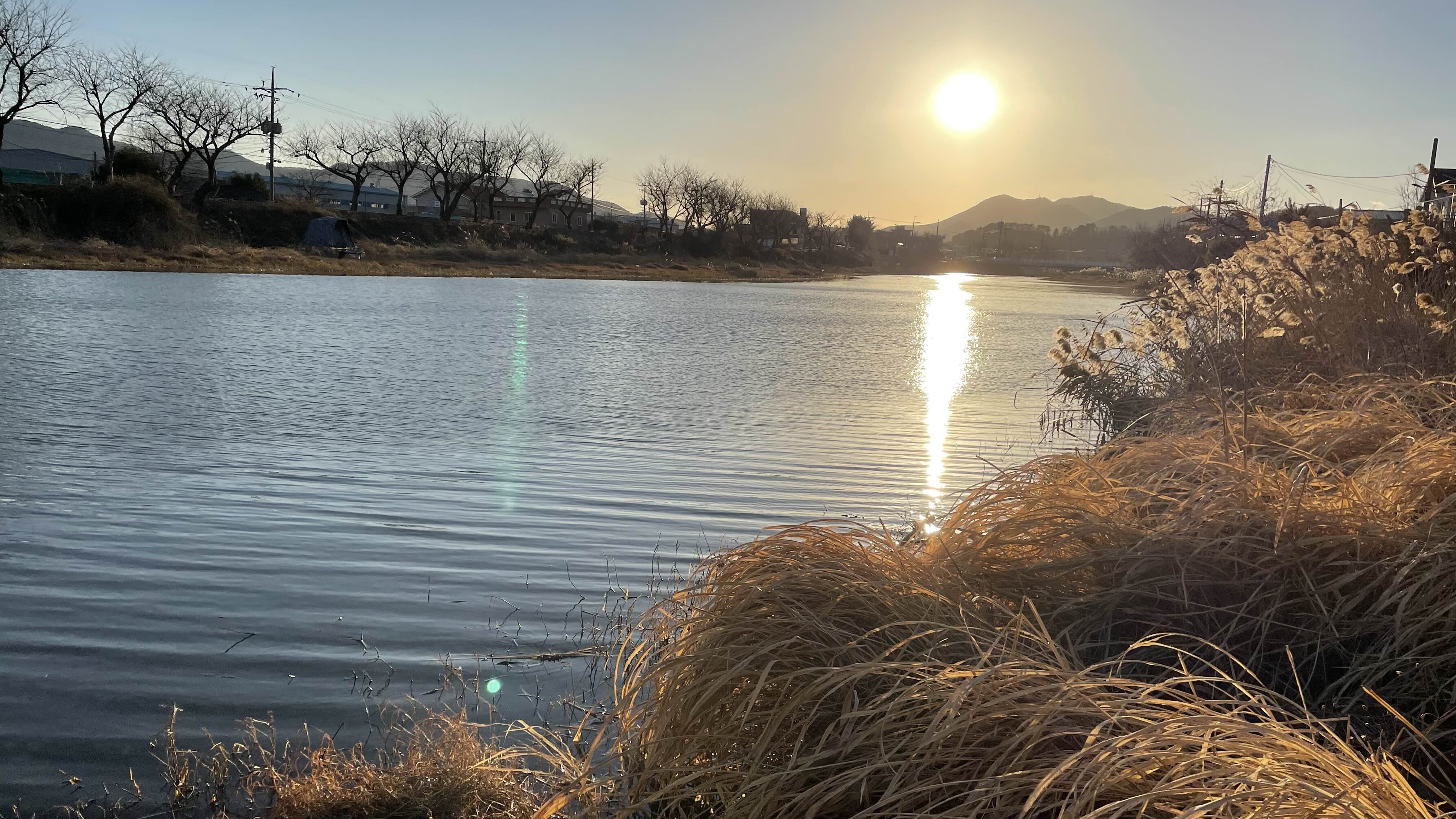 오후 햇살이 물가에 비추어 반짝반짝 빛나는 윤슬이 아름답습니다.