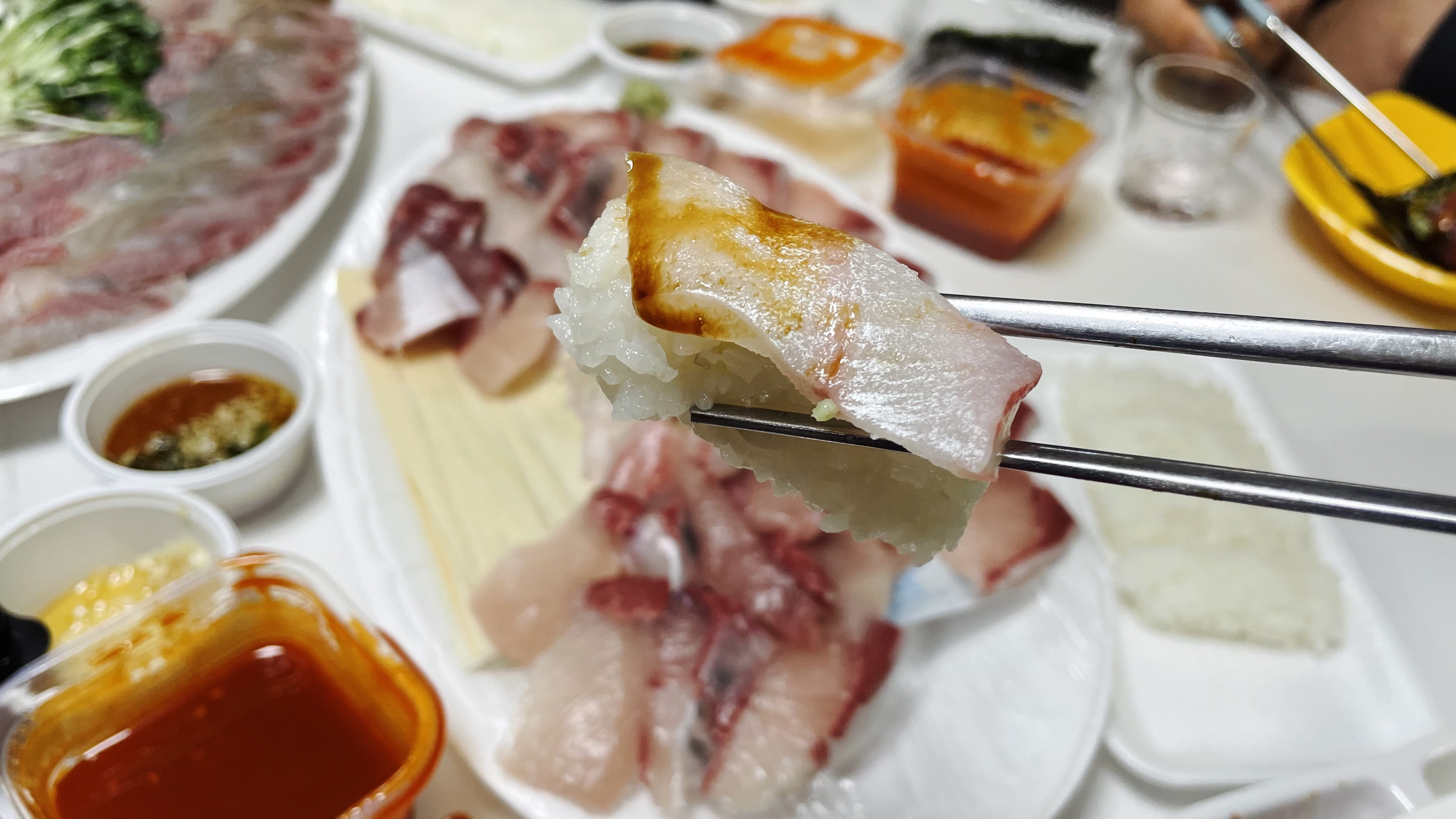 음식은 이미 충분한데, 제가 방어회 먹고 싶다고 얼마 전에 한 마디 한 적 있는데 그것까지 준비를 했네요.