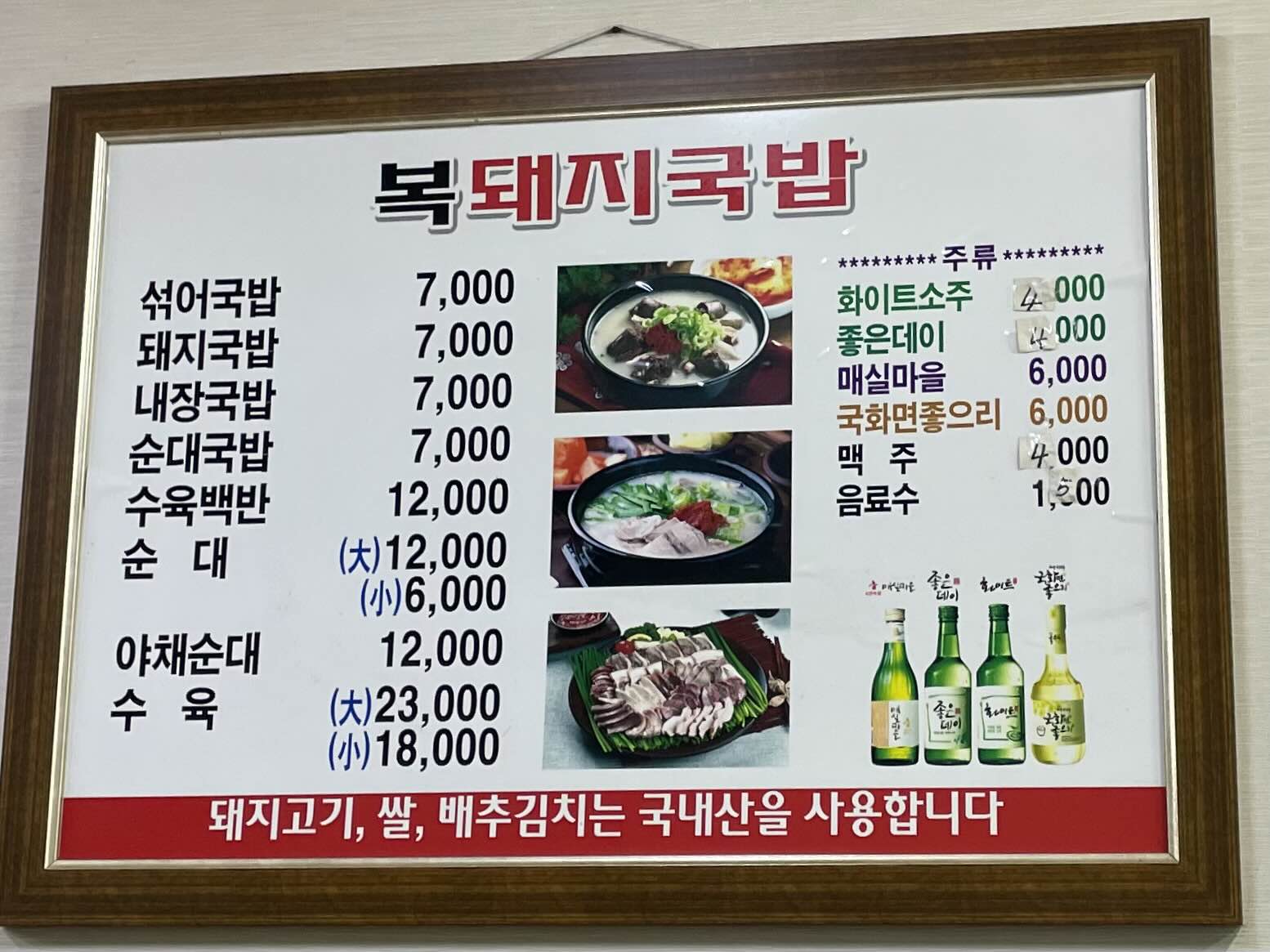 가끔 섞어국밥을 500원 더 받는 가게도 있던데 이 곳의 국밥 가격은 모두 7천원으로 동일합니다.