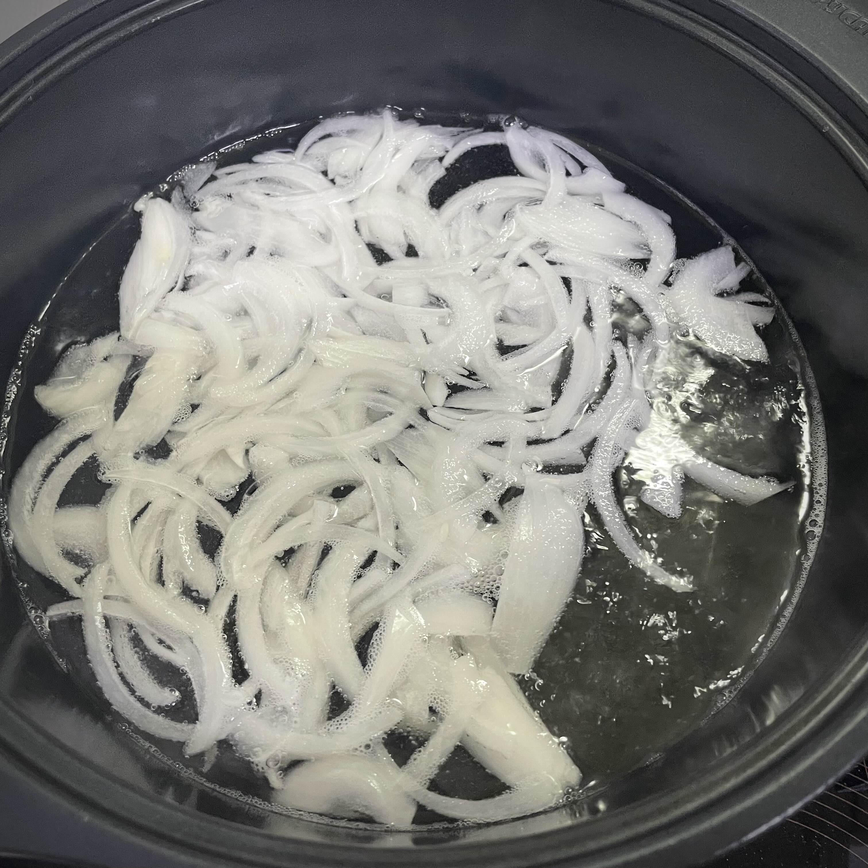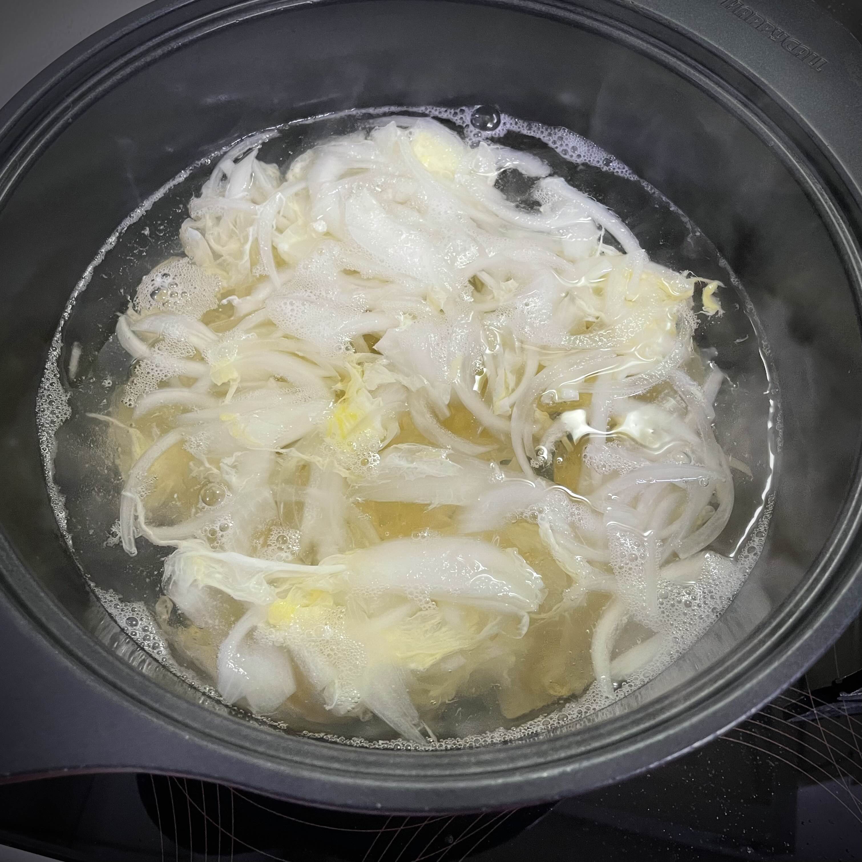 물이 끓으면 양파를 넣고 액젓(1.5) 을 넣은 다음 간을 봅니다.