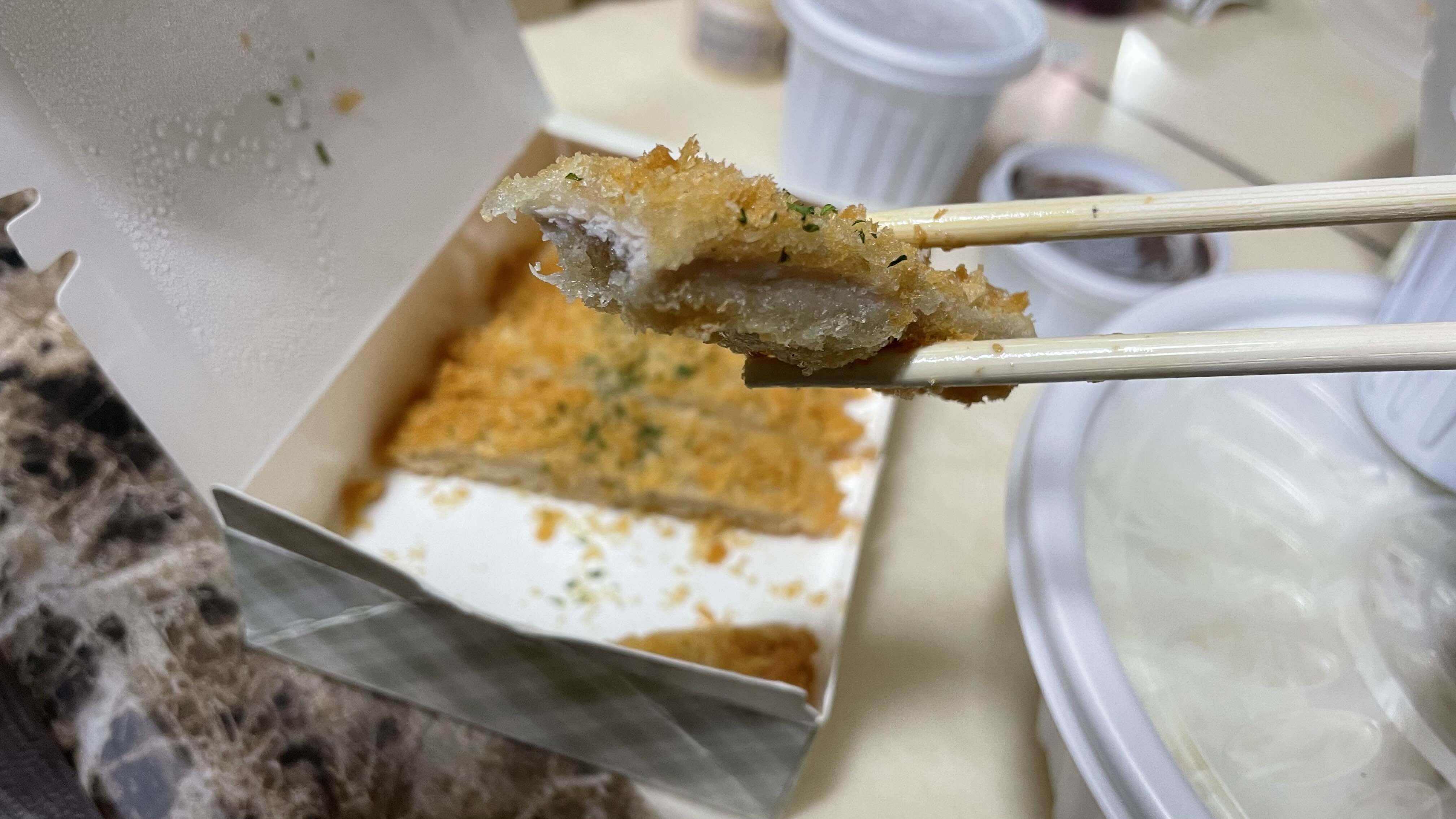 튀김과 고기 사이에 결이 보이고 좀 식은 것처럼 보였습니다.