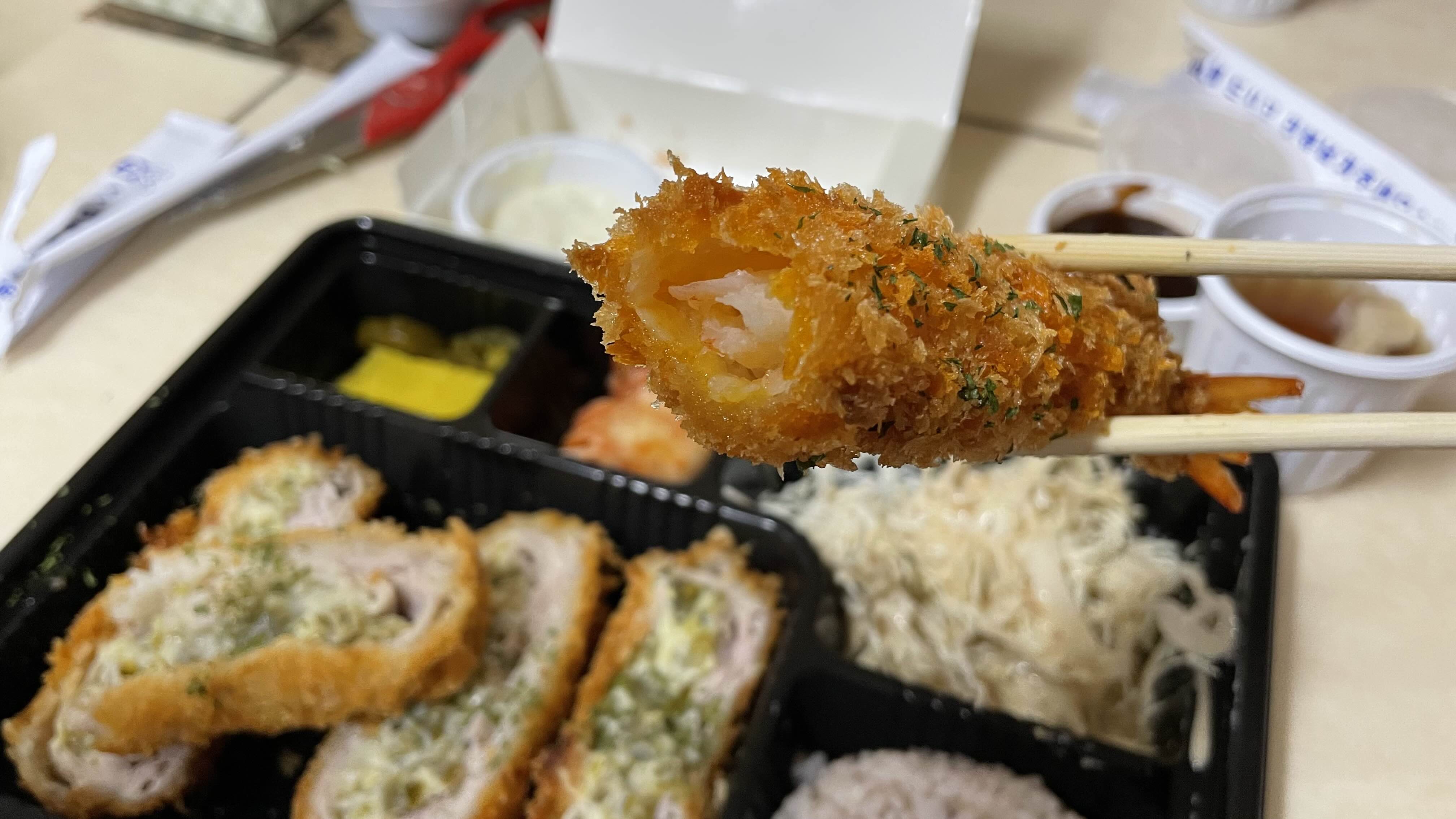 추가로 주문한 새우 튀김도 하나 들어 있네요.