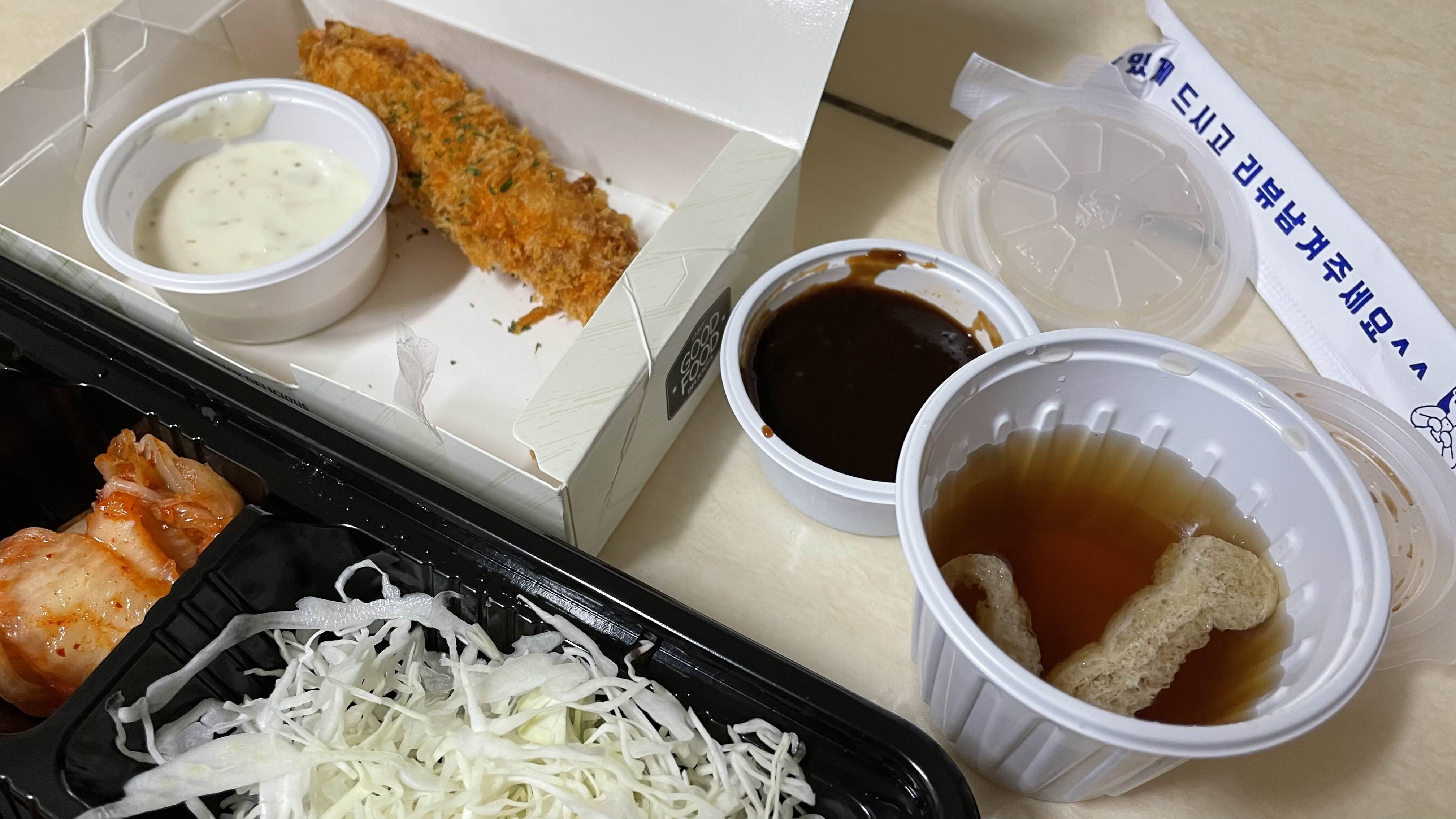 돈까스 소스는 따로 통에 담겨 있구요.