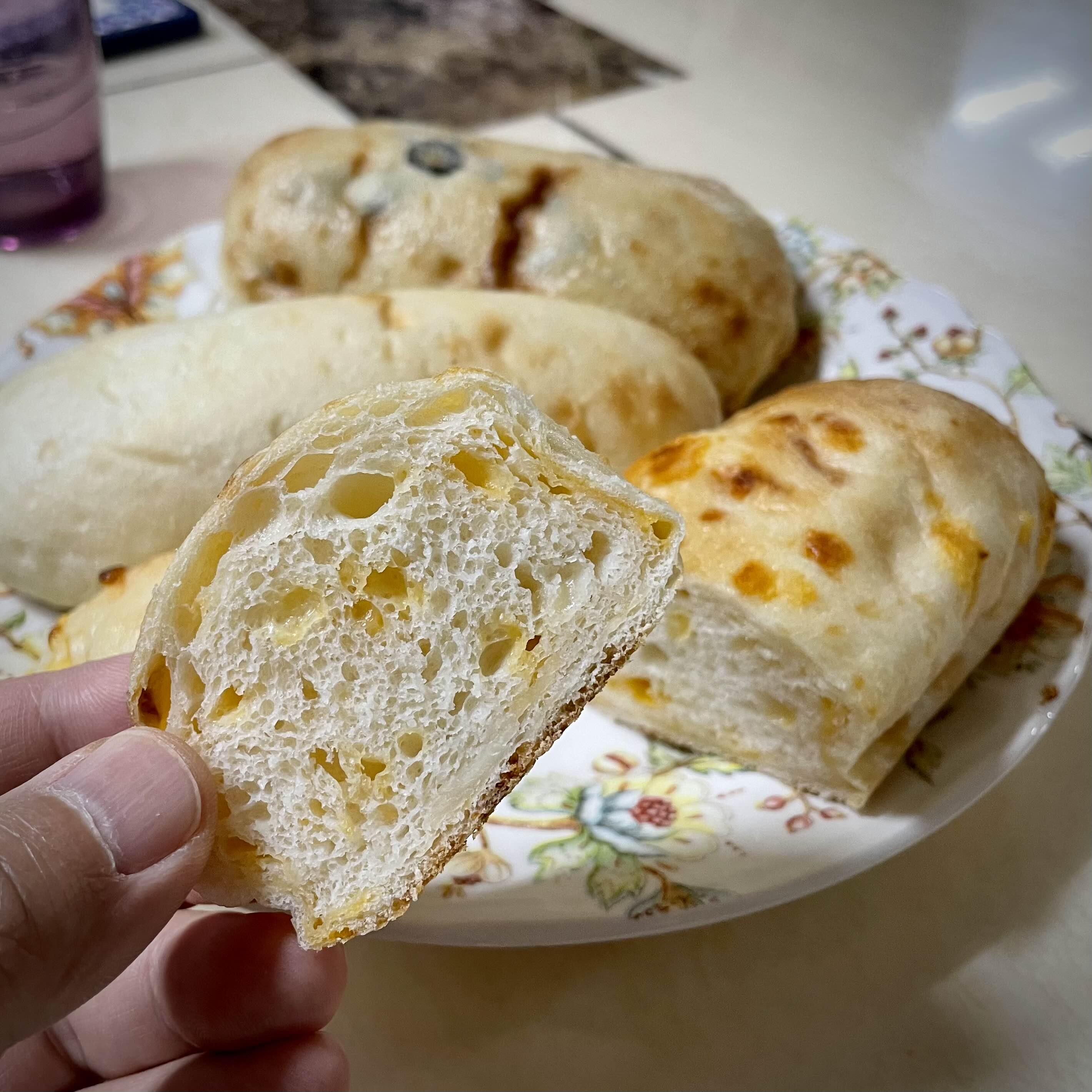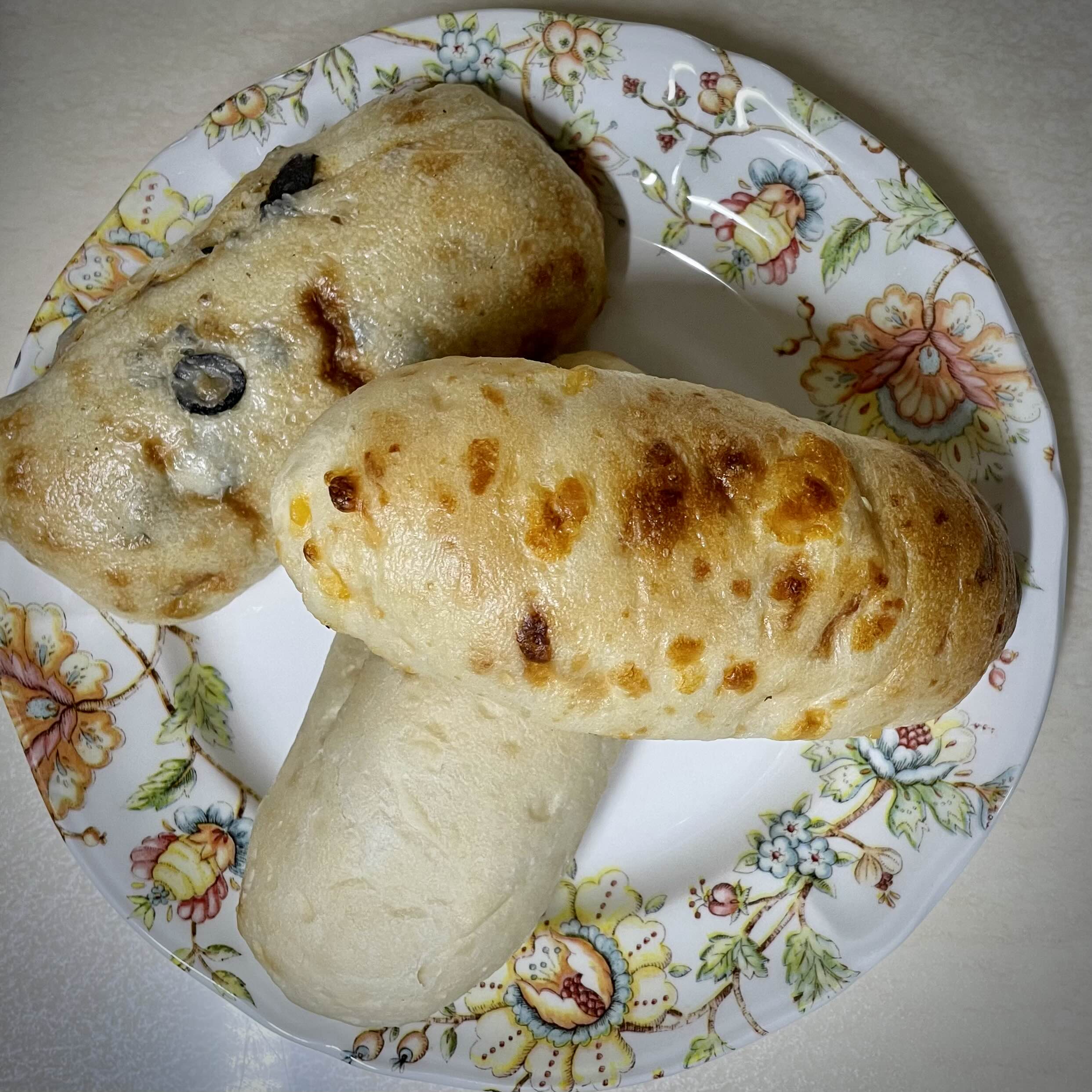 위쪽부터 올리브, 치즈, 감자 치아바타 입니다.