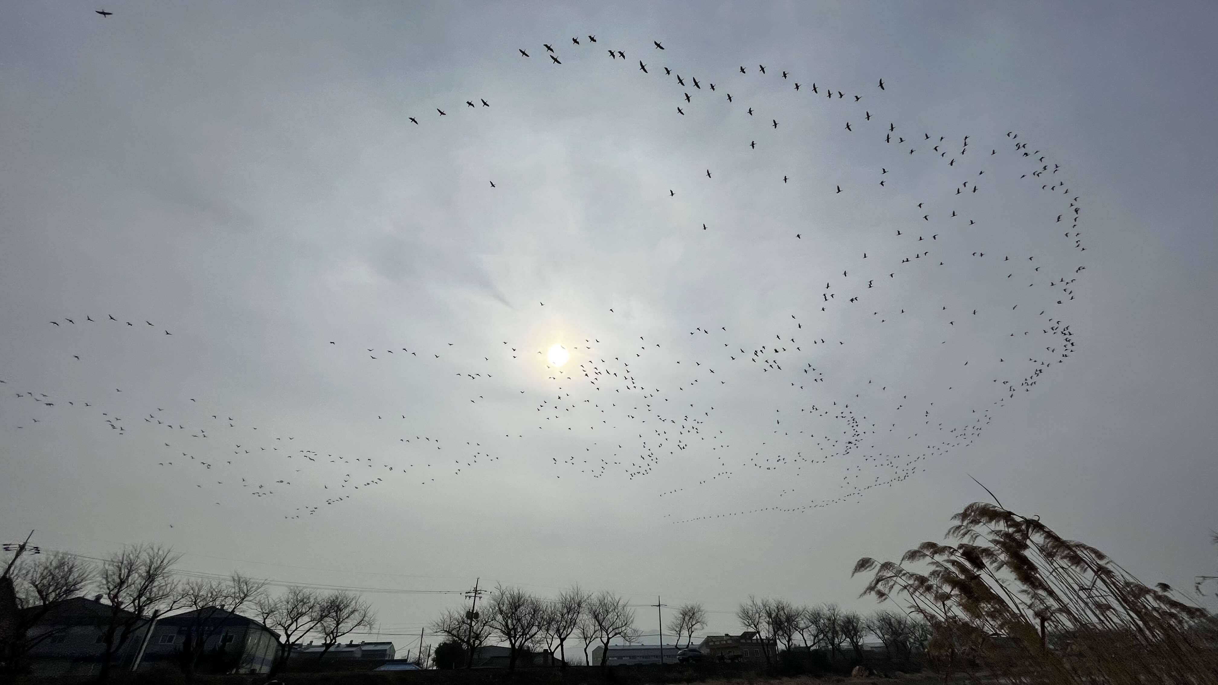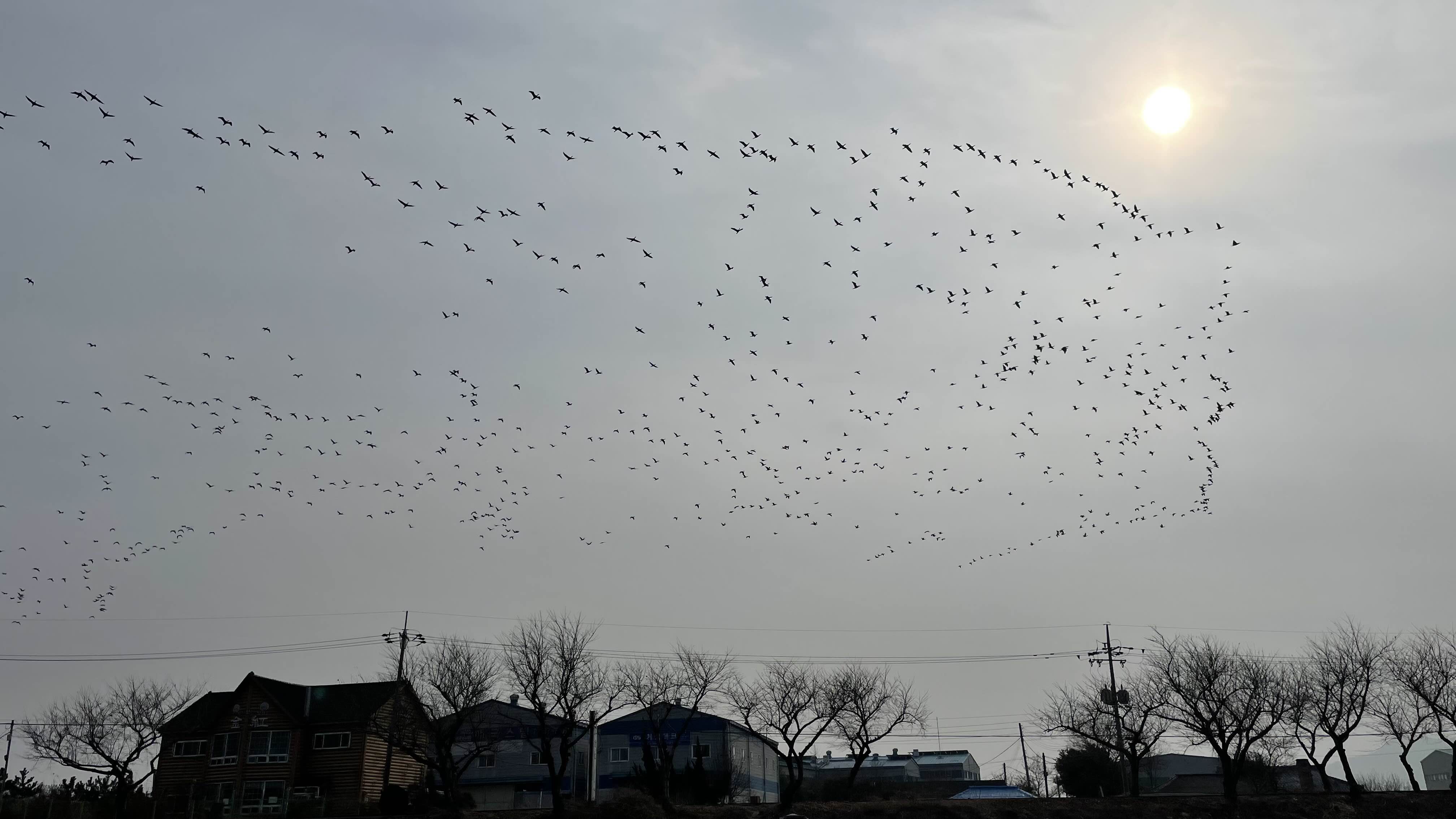 사진을 확대해서 세어보니 대략 천마리쯤 되는 것 같습니다.