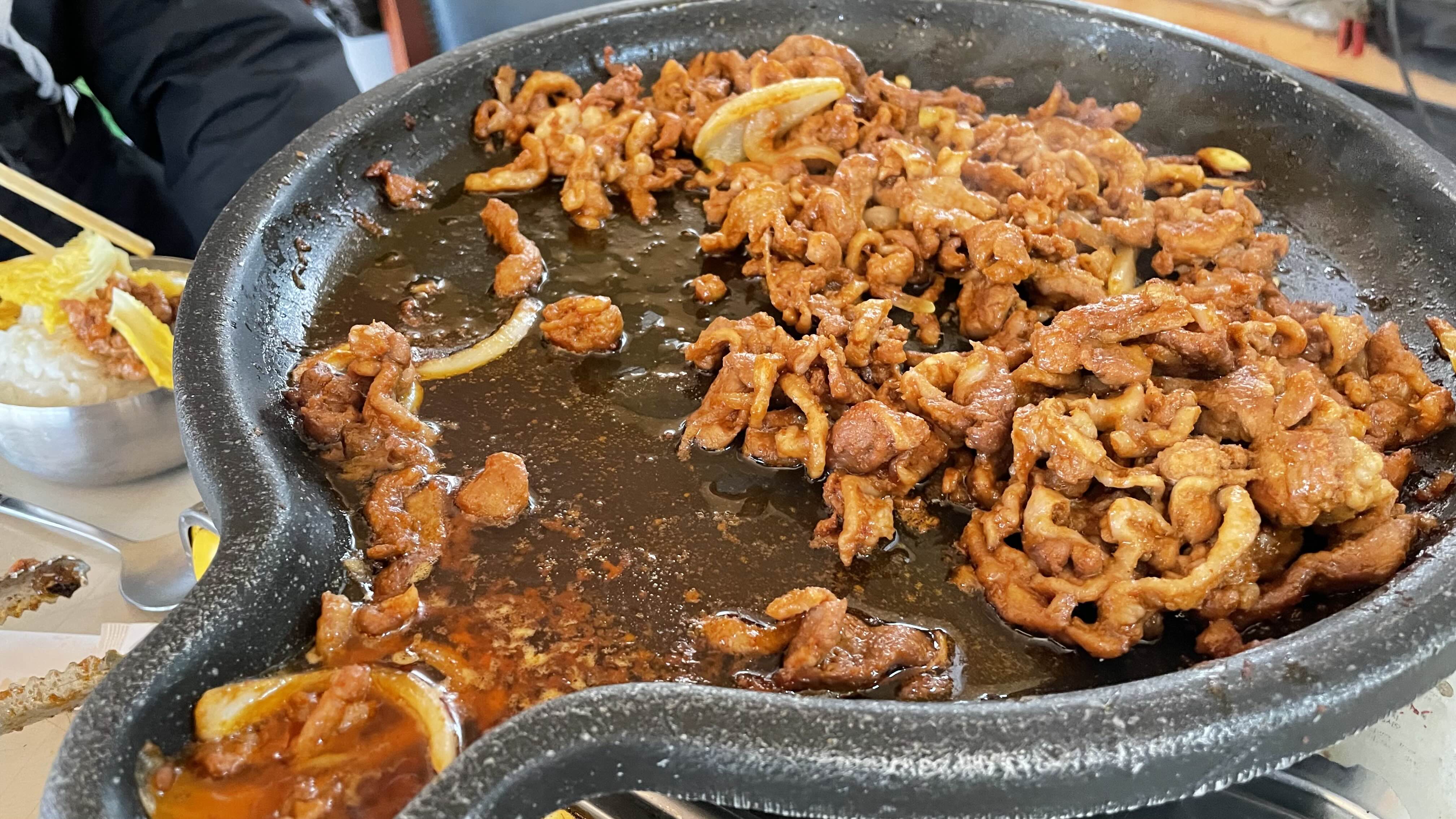점심은 매점에서 오리주물럭을 주문하여 먹었습니다.