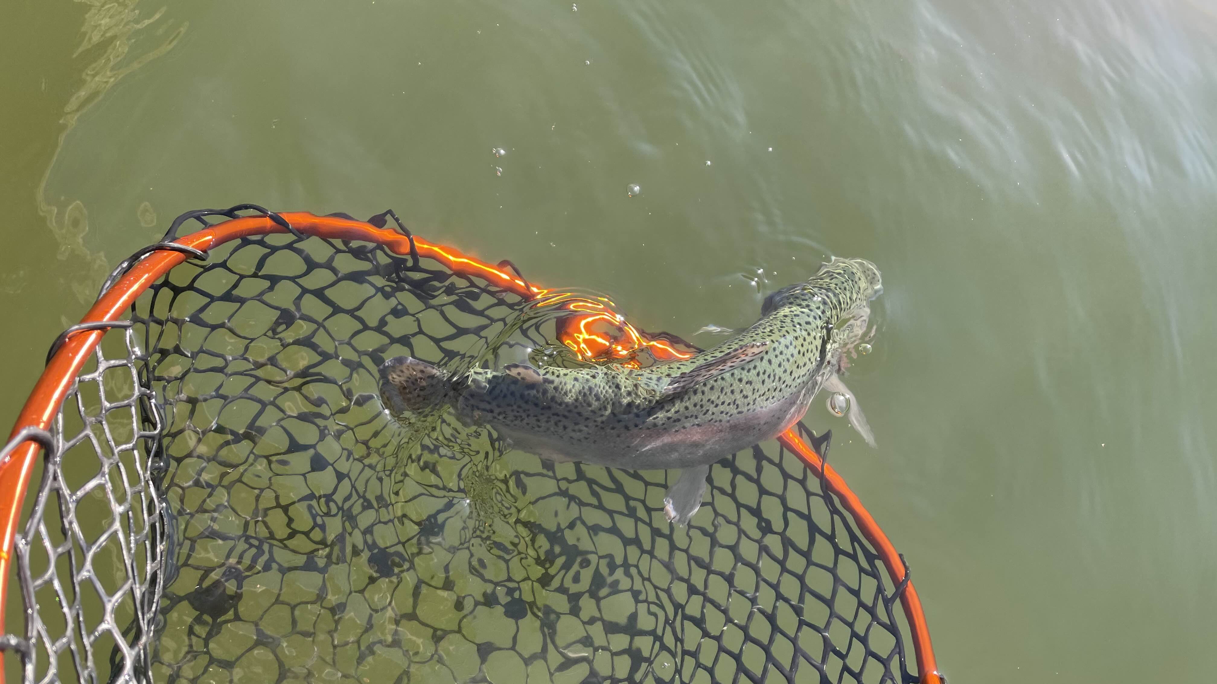 여섯 번째 송어는 낚싯대의 휨새를 찍느라