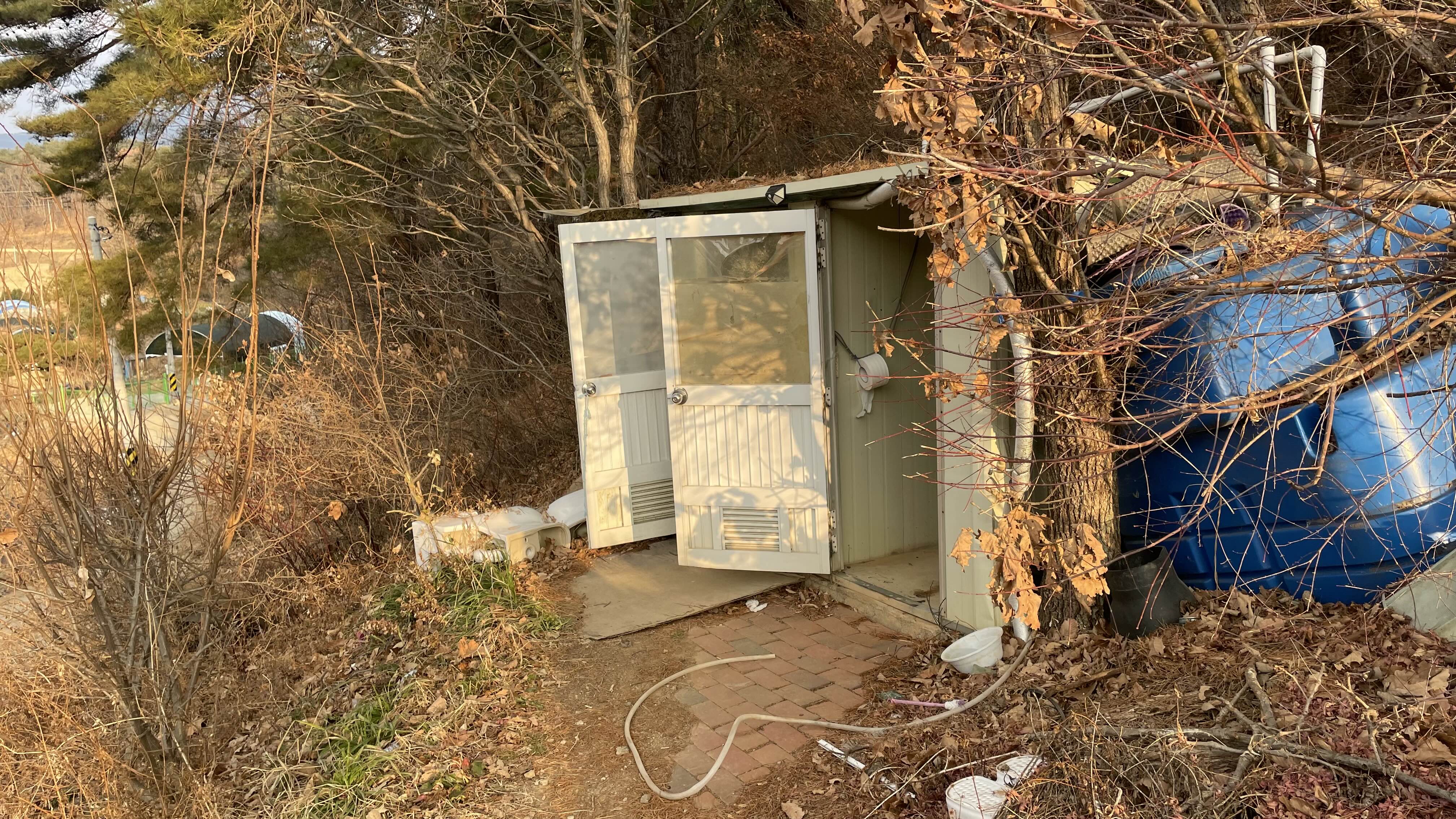 매점에서 개가 있는 곳을 지나 오면 화장실이 두 칸 있습니다.