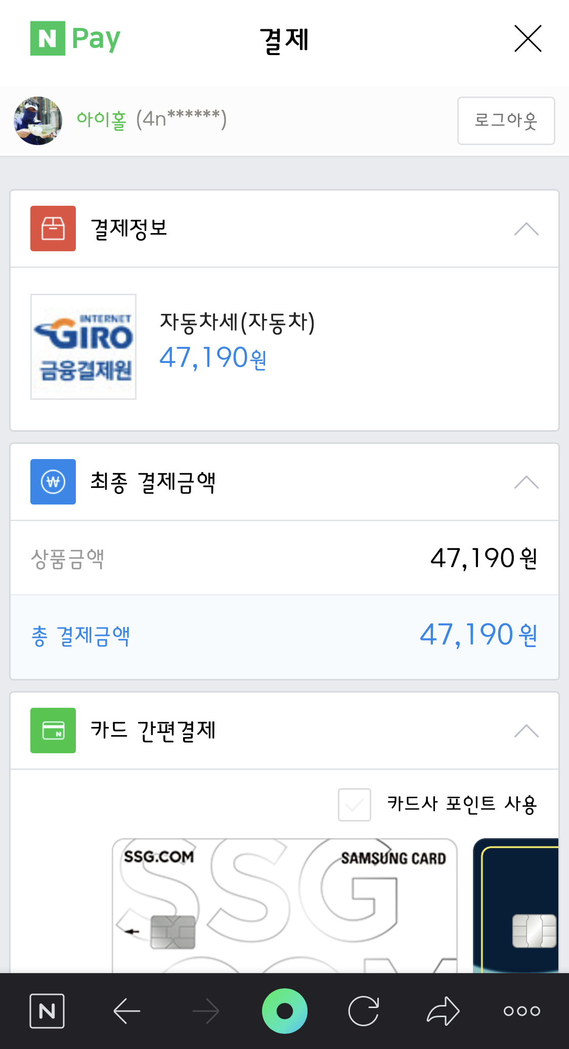 네이버페이로 간편하게 납부하시면 좋을 것 같습니다.