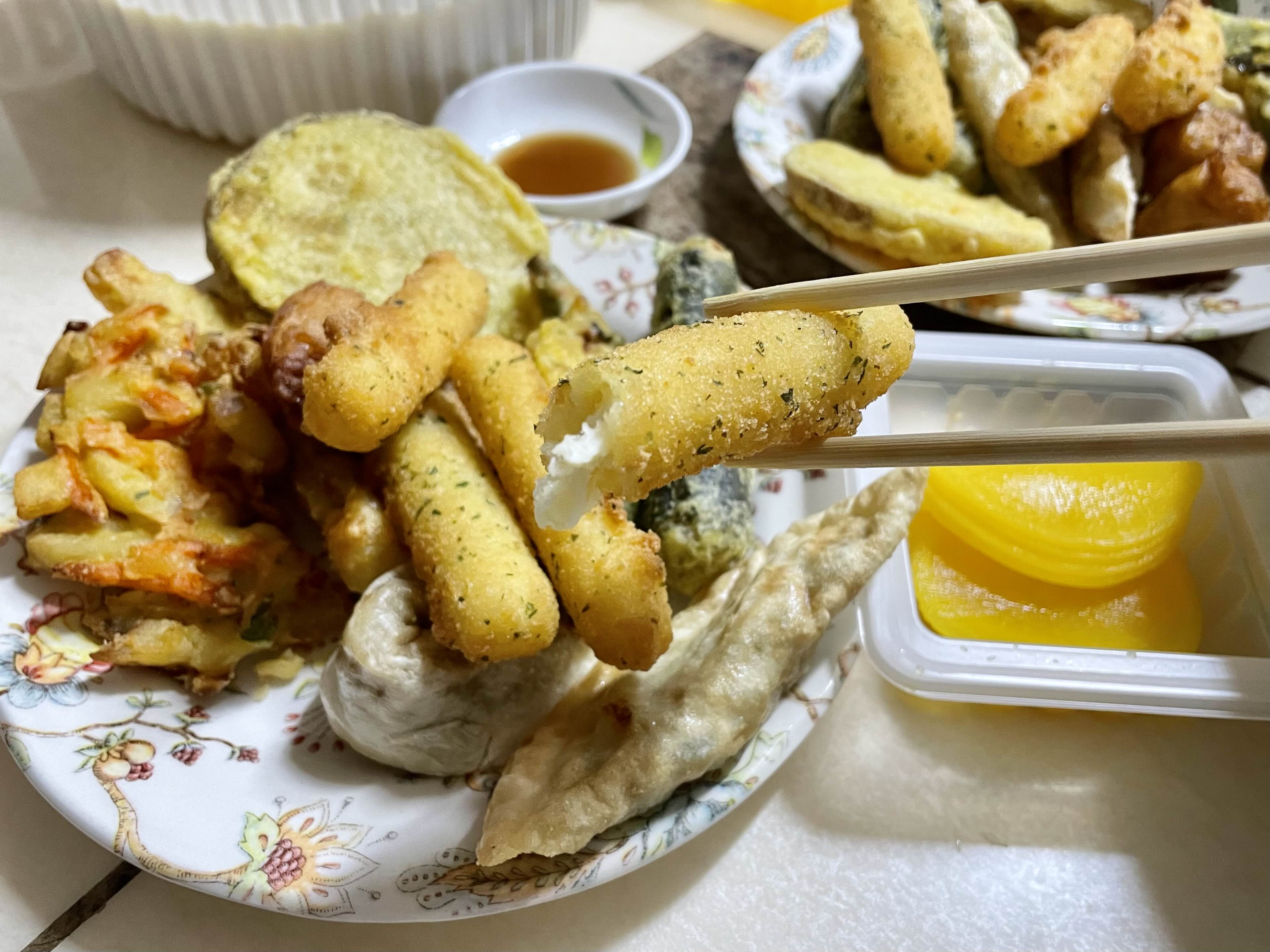 야채튀김, 김말이, 군만두, 어묵, 고구마, 고추 튀김