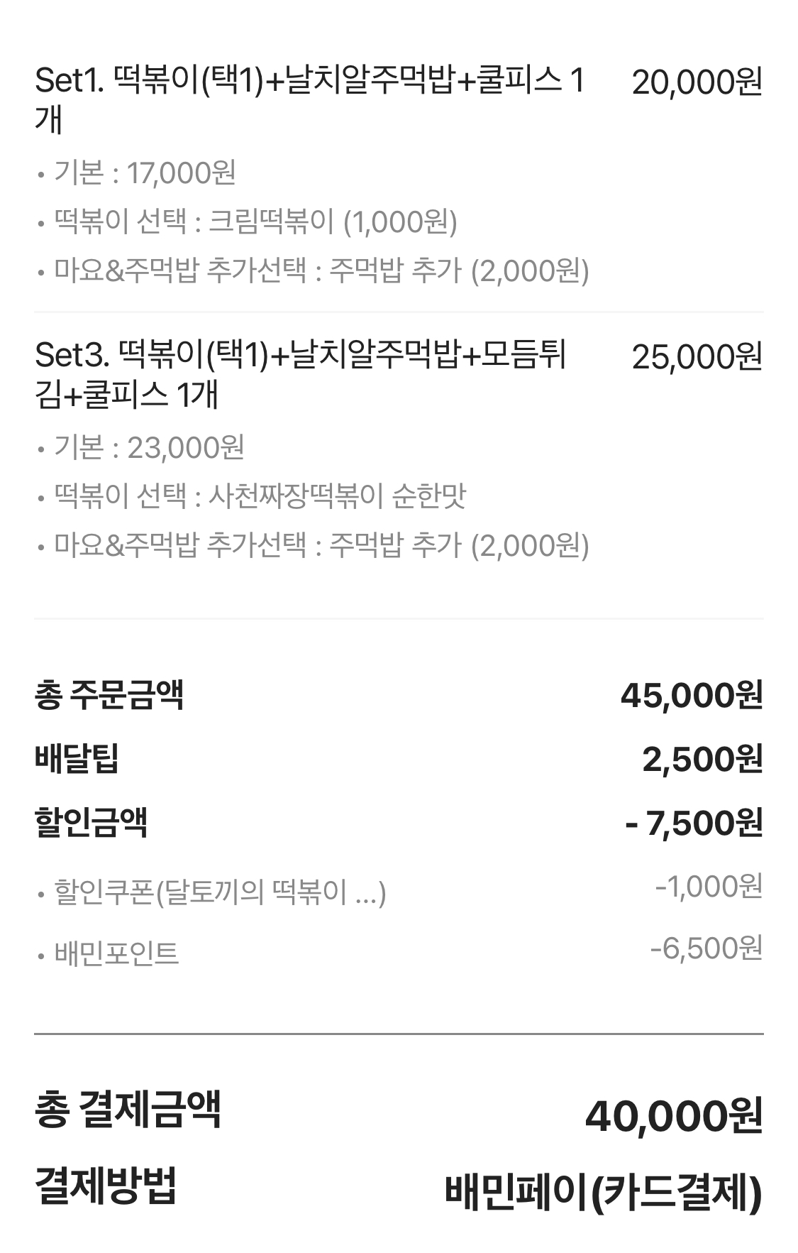 지난 번에는 크림떡볶이와 투움바 떡볶이를 주문했었기에,