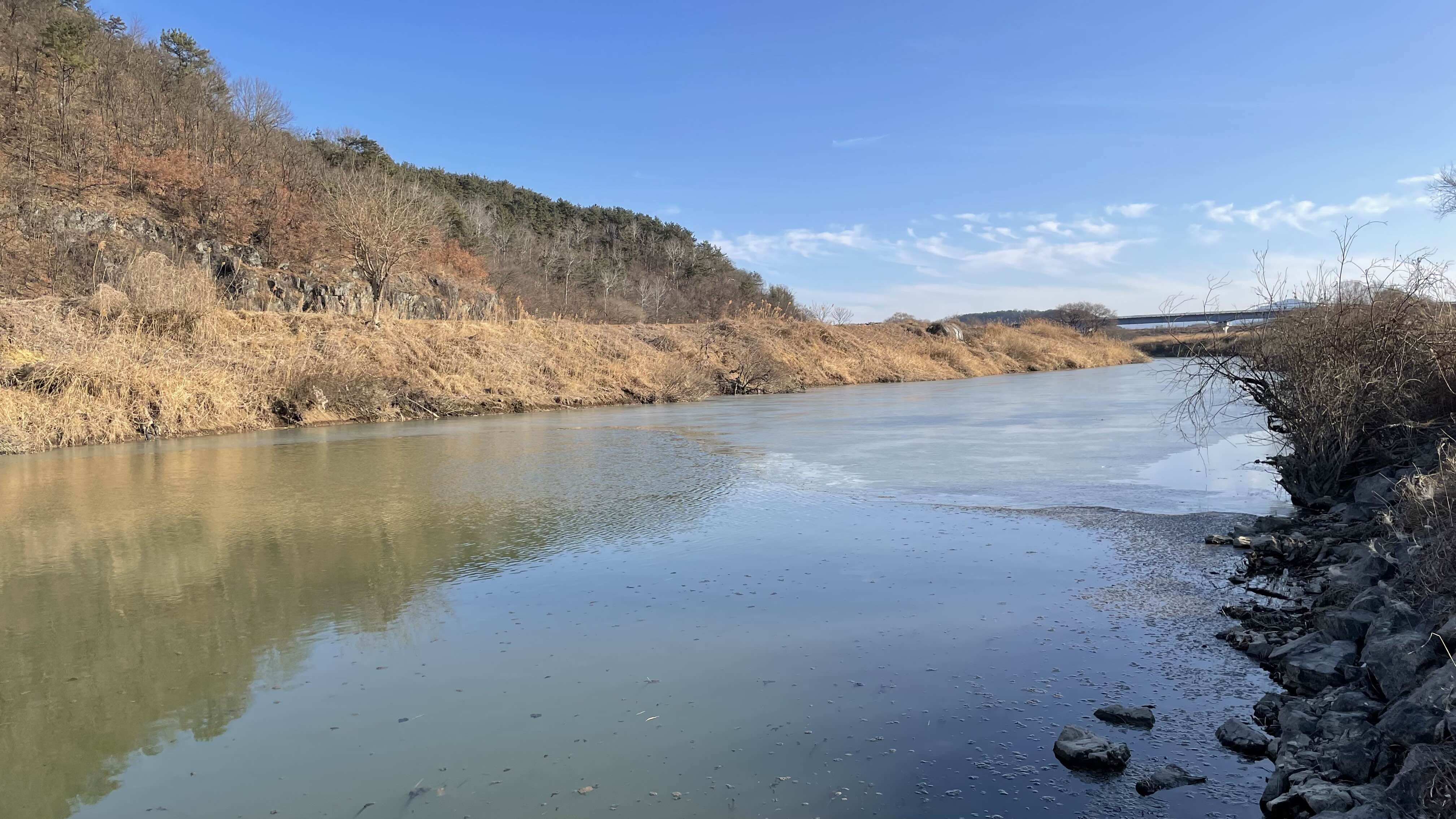 우측은 제방이 높게 있어서 바람이 없을거라 생각했는데,
