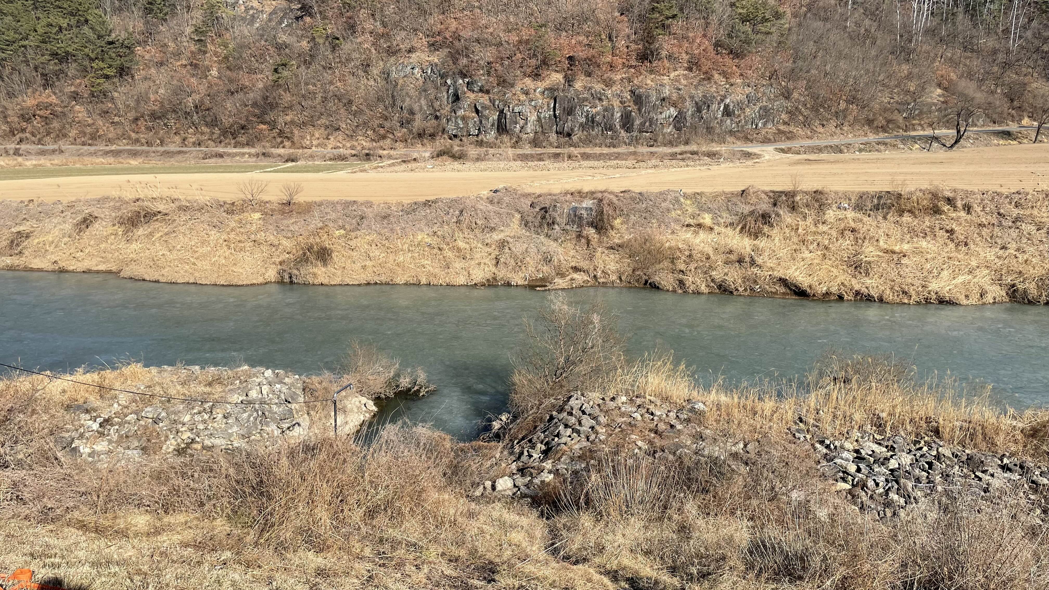 포인트에 도착해 제방에서 아래 수로를 내려보니