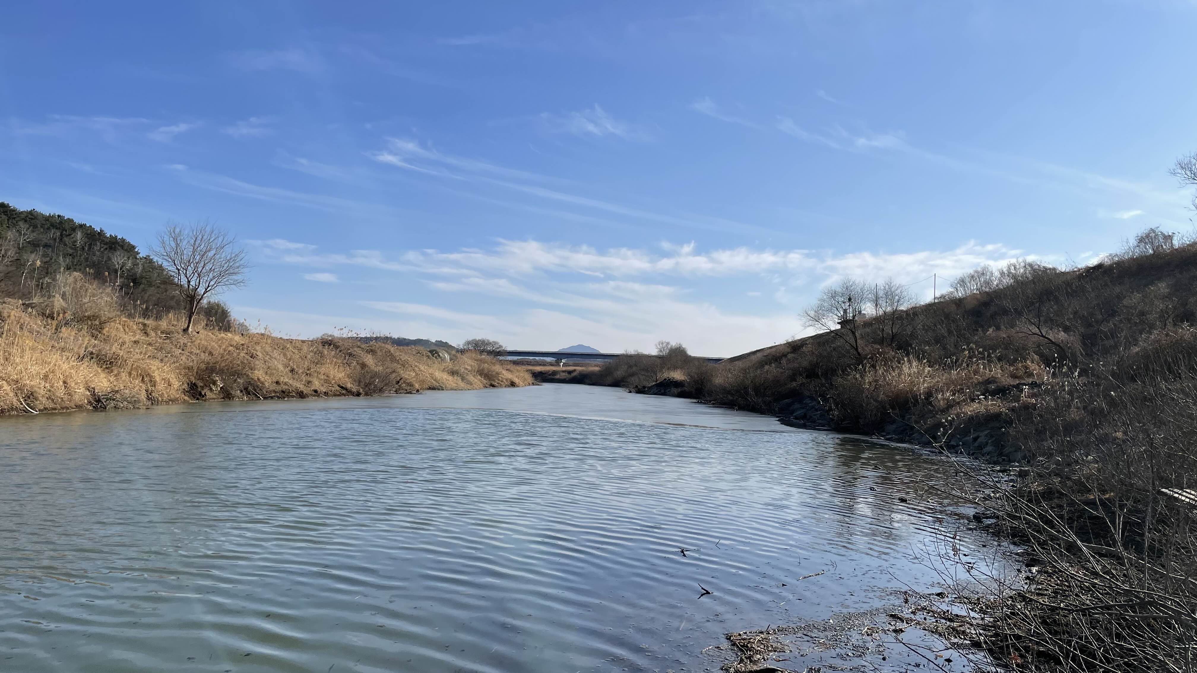 여기는 경남 창녕의 청도천이며, 학포수로라고 불리는 곳입니다.