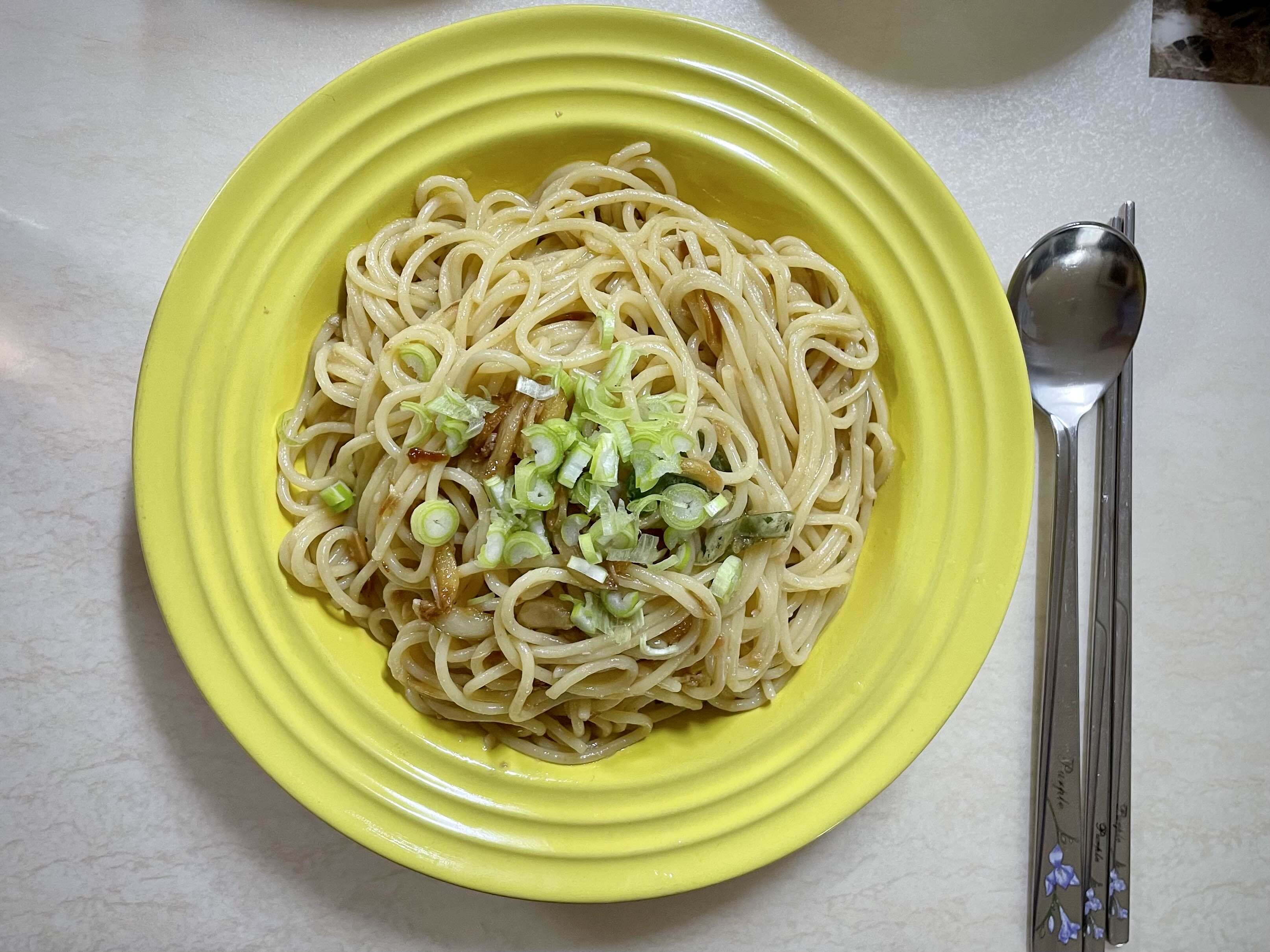 면을 2~3분 정도 올리브 오일에 볶은 다음 그릇에 담아주시면 됩니다.