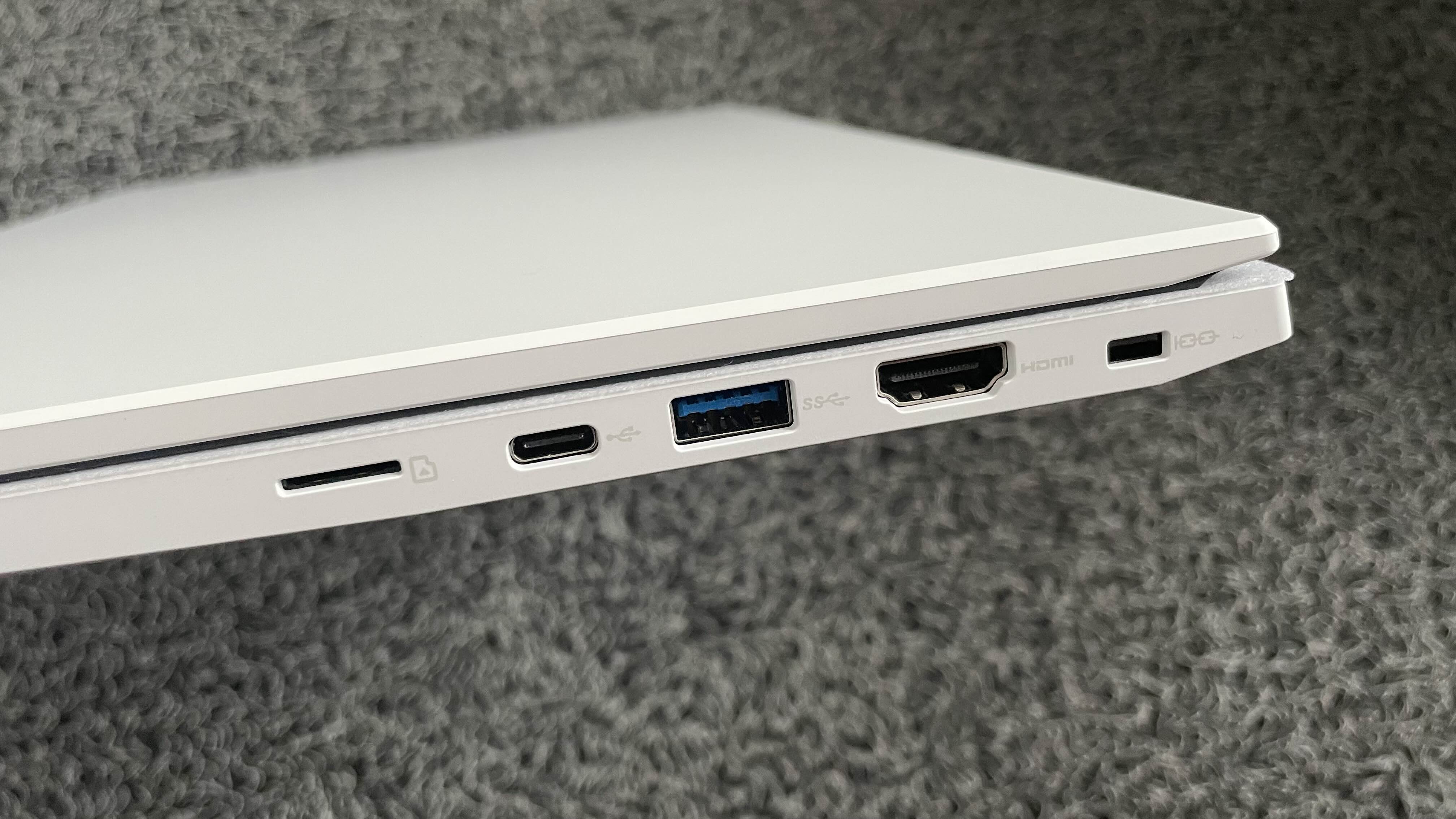 우측에는 MicroSD 슬롯, USB-C, USB-A, HDMI, Lock 포트가 있습니다.