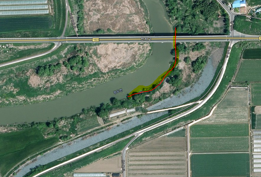 두 번째 탐색구간은 반학교 아래 이 구간입니다.