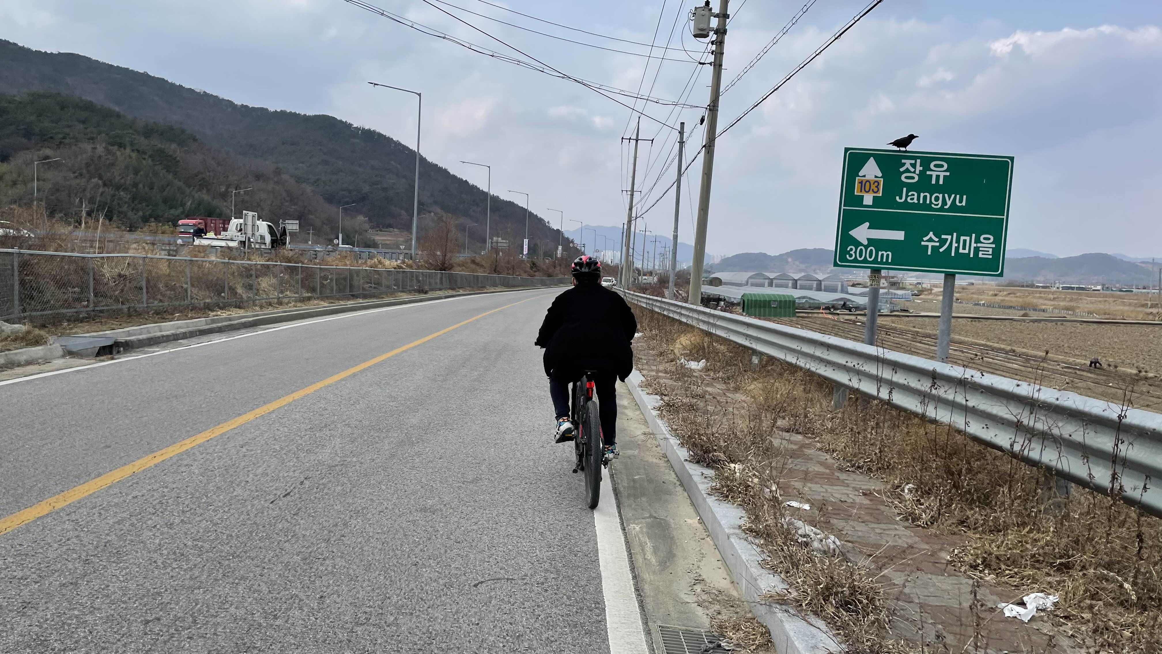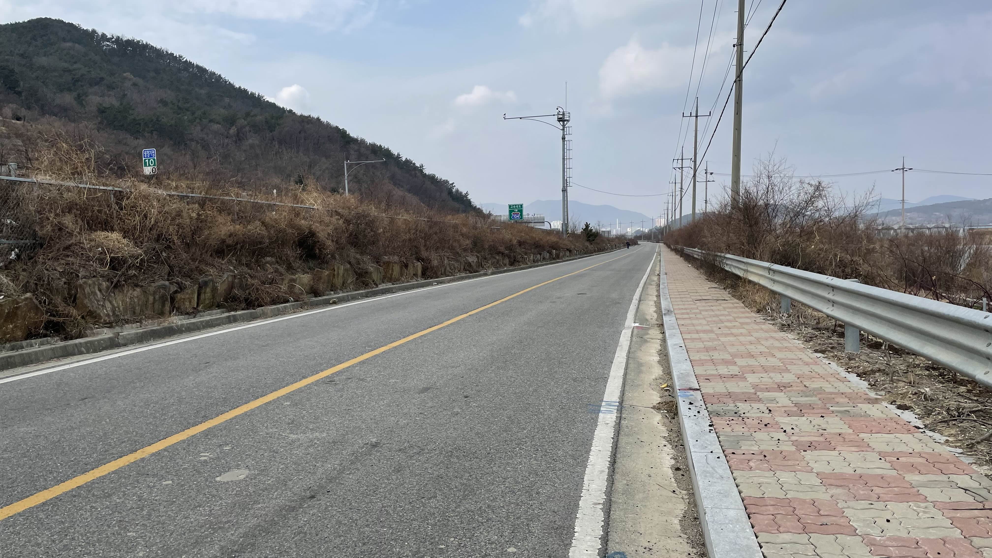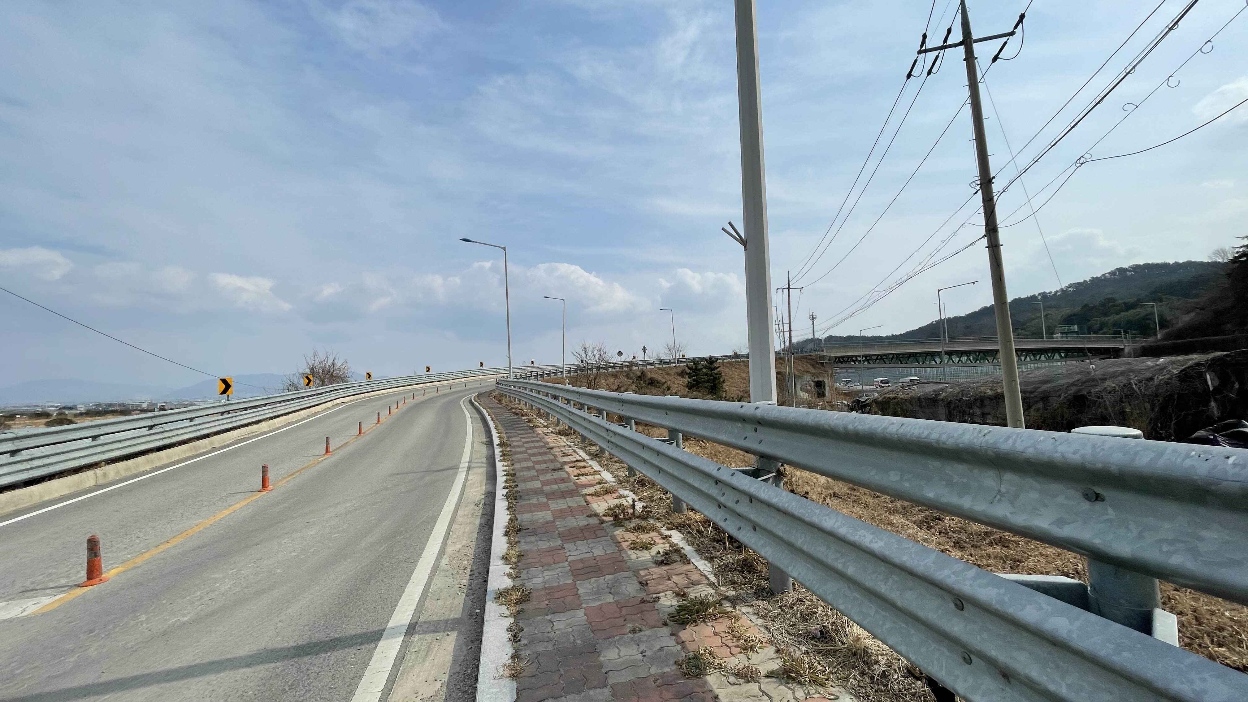 이 길이 그나마 차량 통행이 적어 제일 안전한 길인 것 같아 그대로 돌아왔습니다