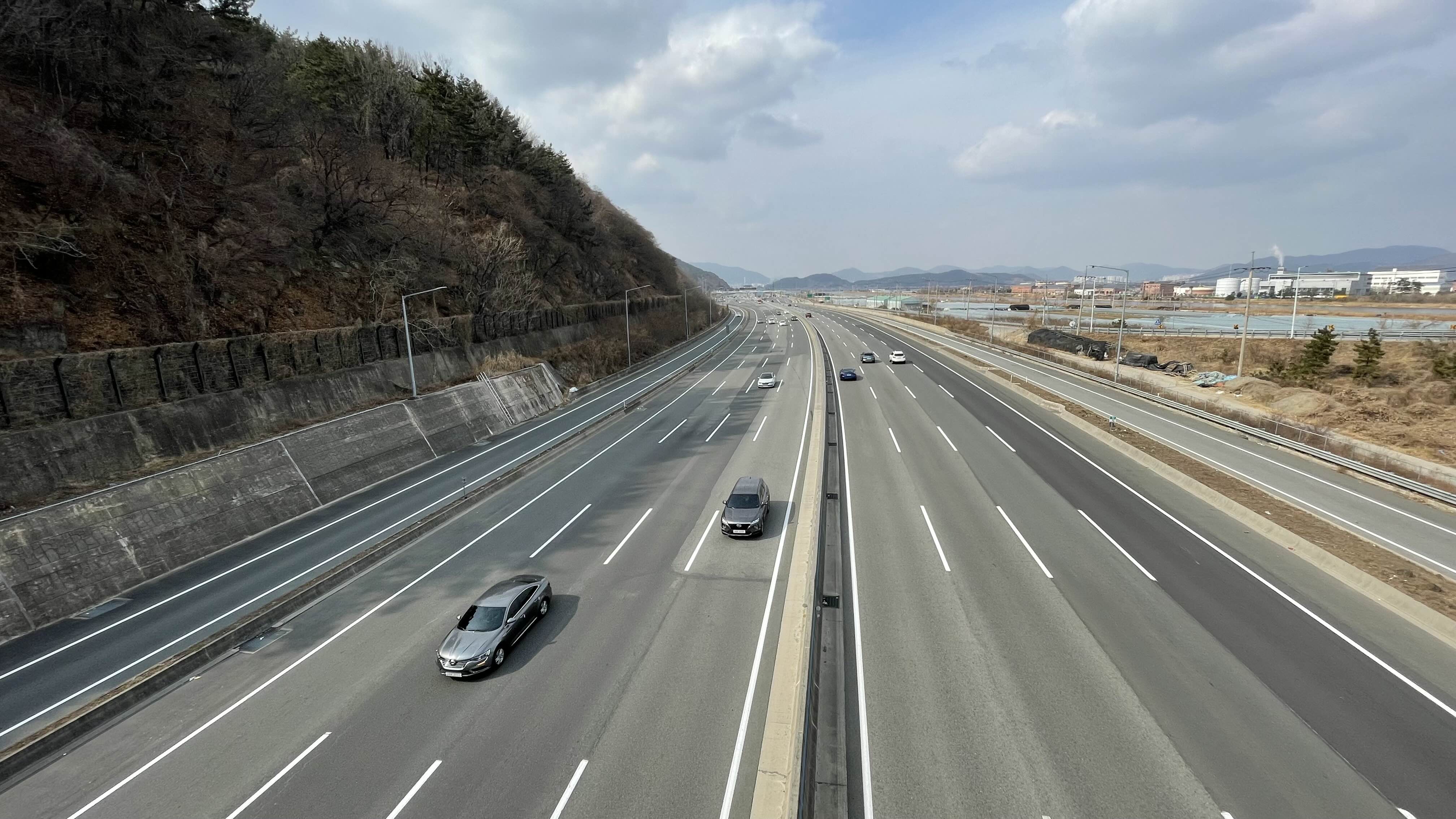 남해고속도로 제2지선 냉정에서 서부산 구간 고속도로 옆을 나란히 달립니다.
