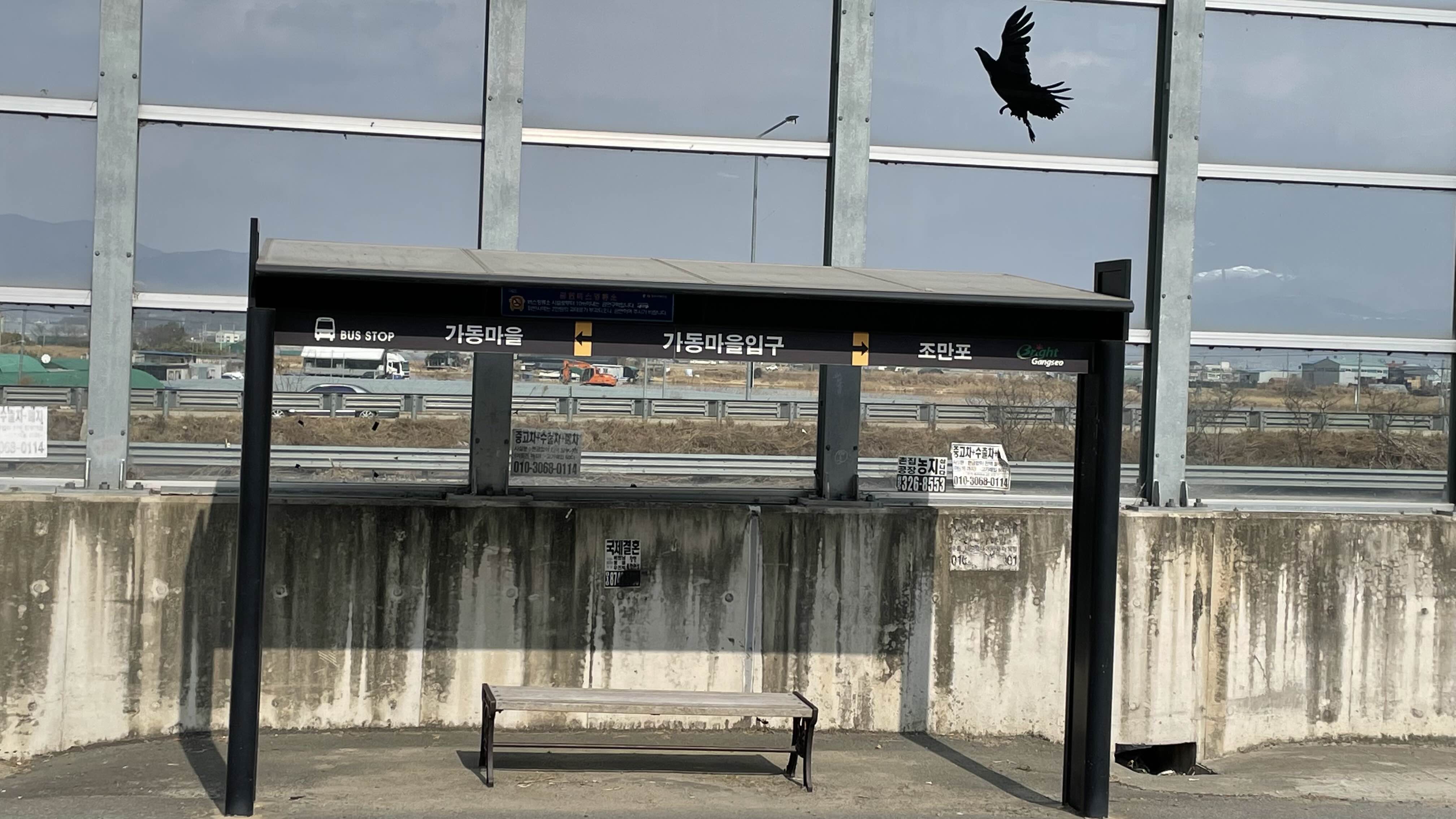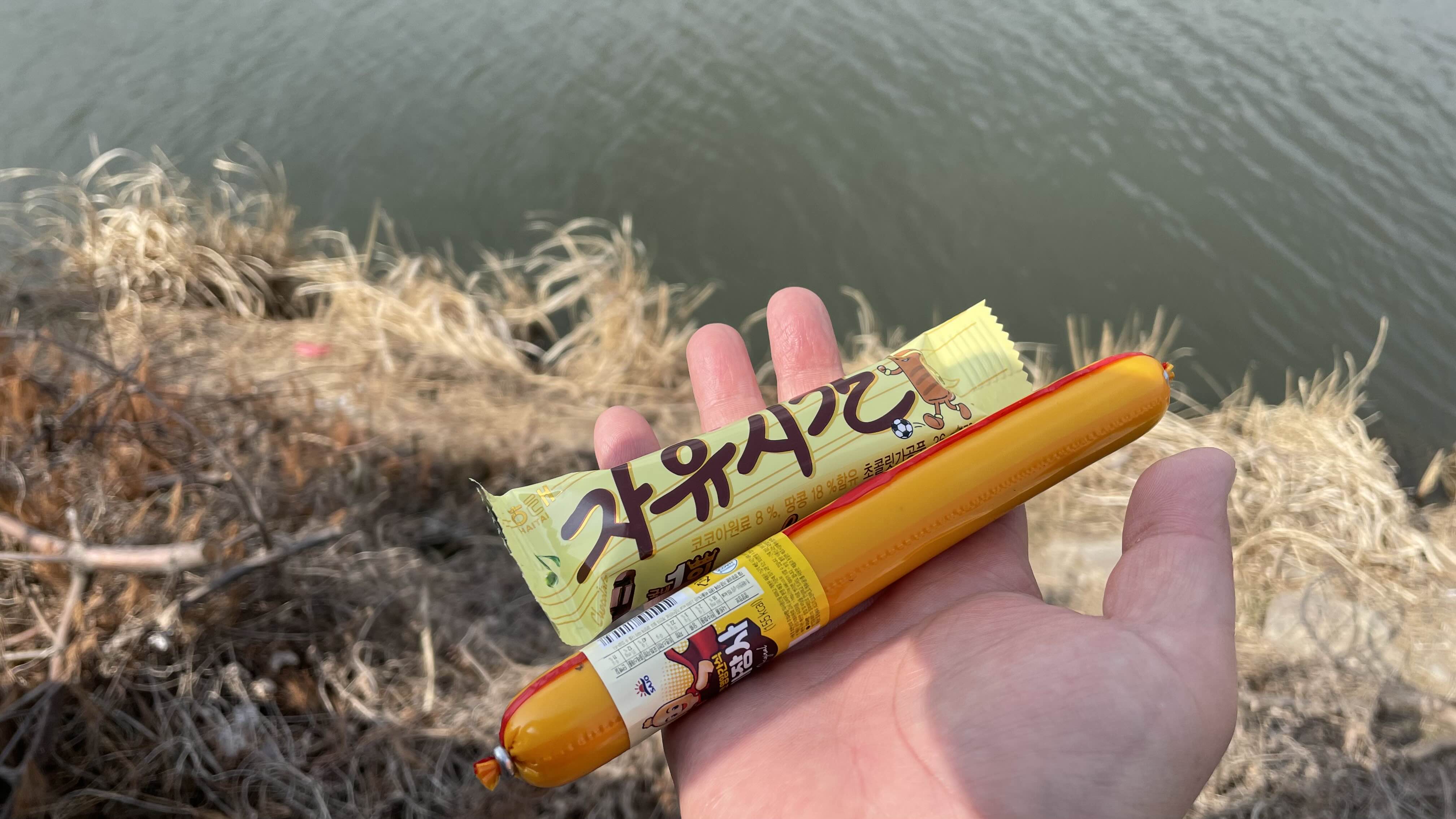 둔치도 버스 정류장에 앉아서 소세지 뜯어먹으면서