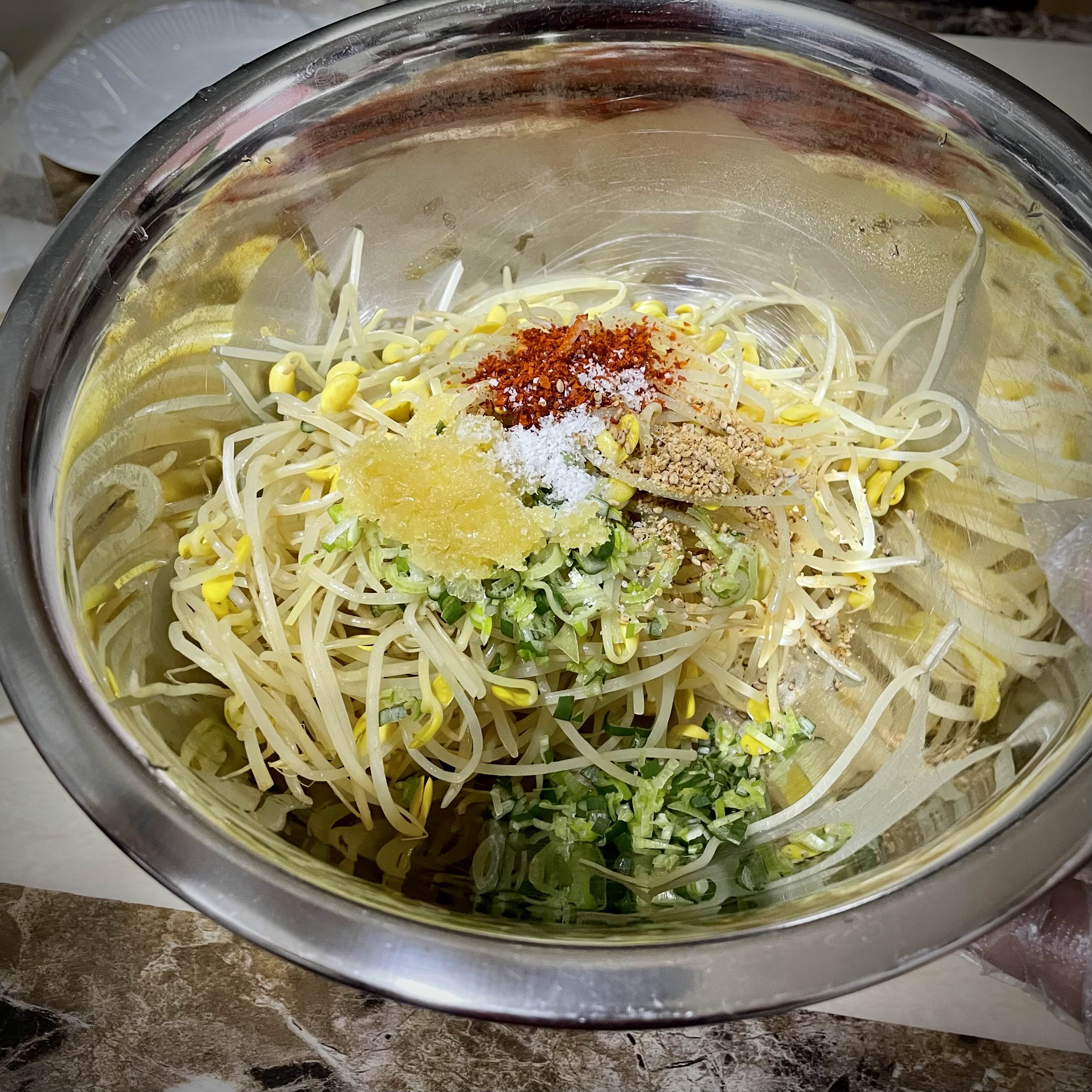 저는 콩나물 양이 많아서 고춧가루와 소금을 조금 더 넣어 주었습니다.