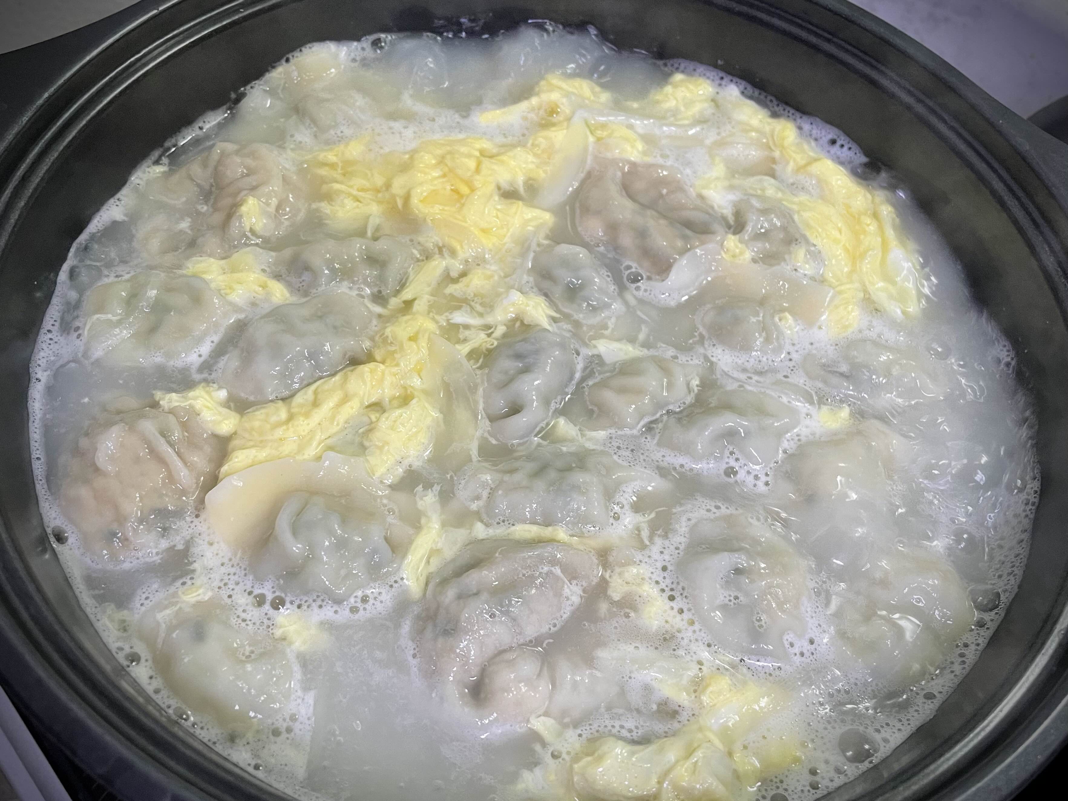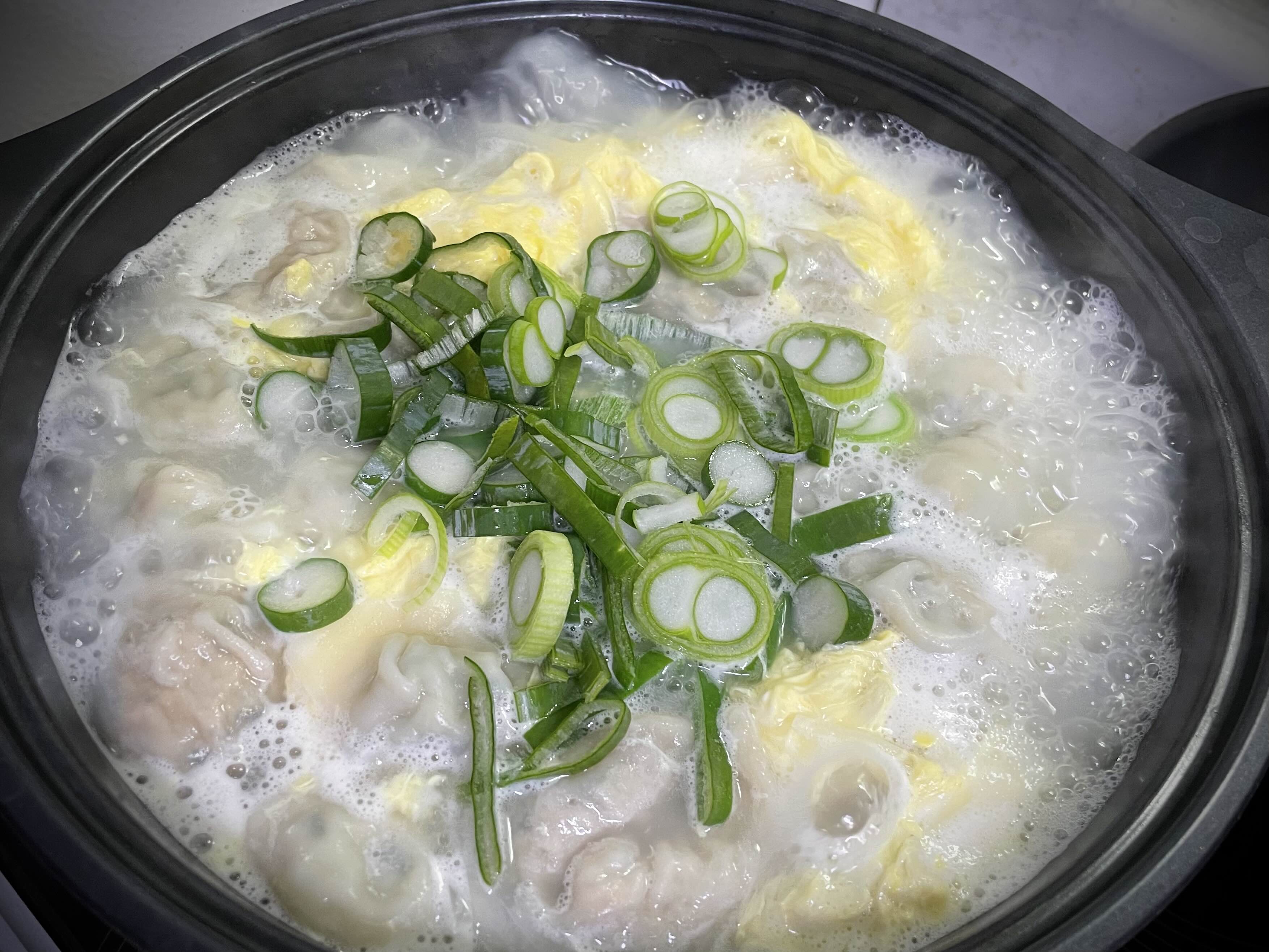 만두랑 떡이 익으면 달걀 2개 풀어서 스윽~ 돌려주시구요.
