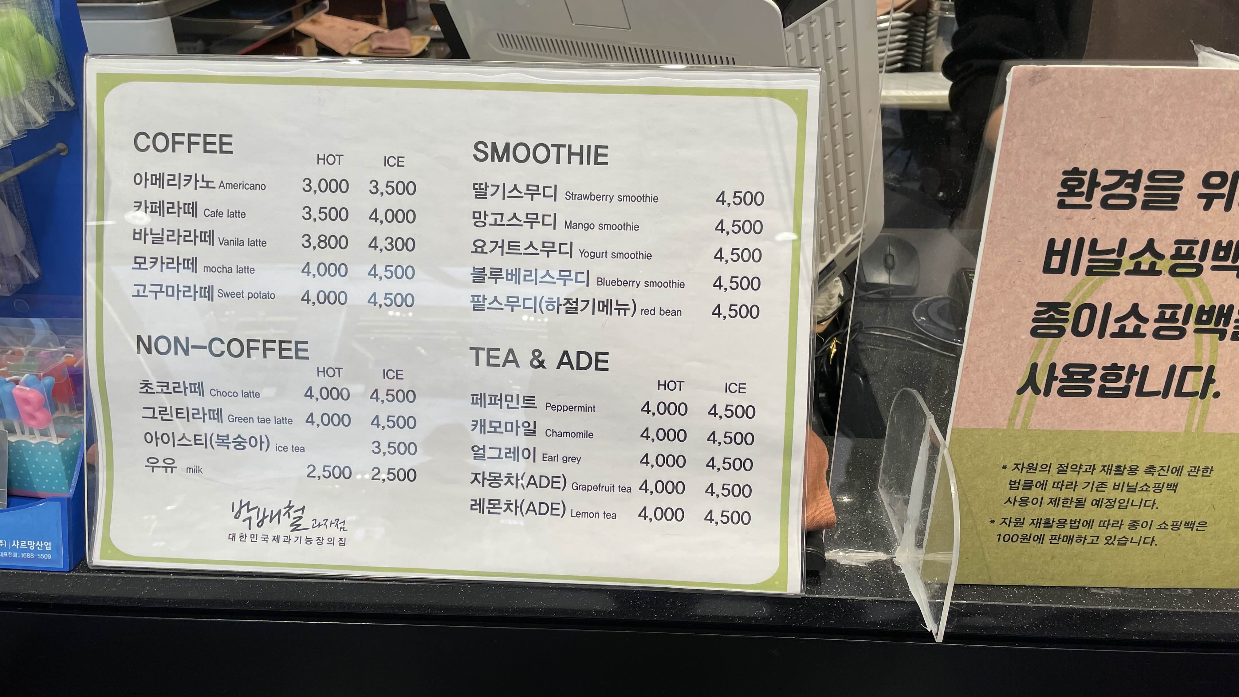 아메리카노는 3천원이고 대체적으로 음료는 저렴한 편인거 같아요.