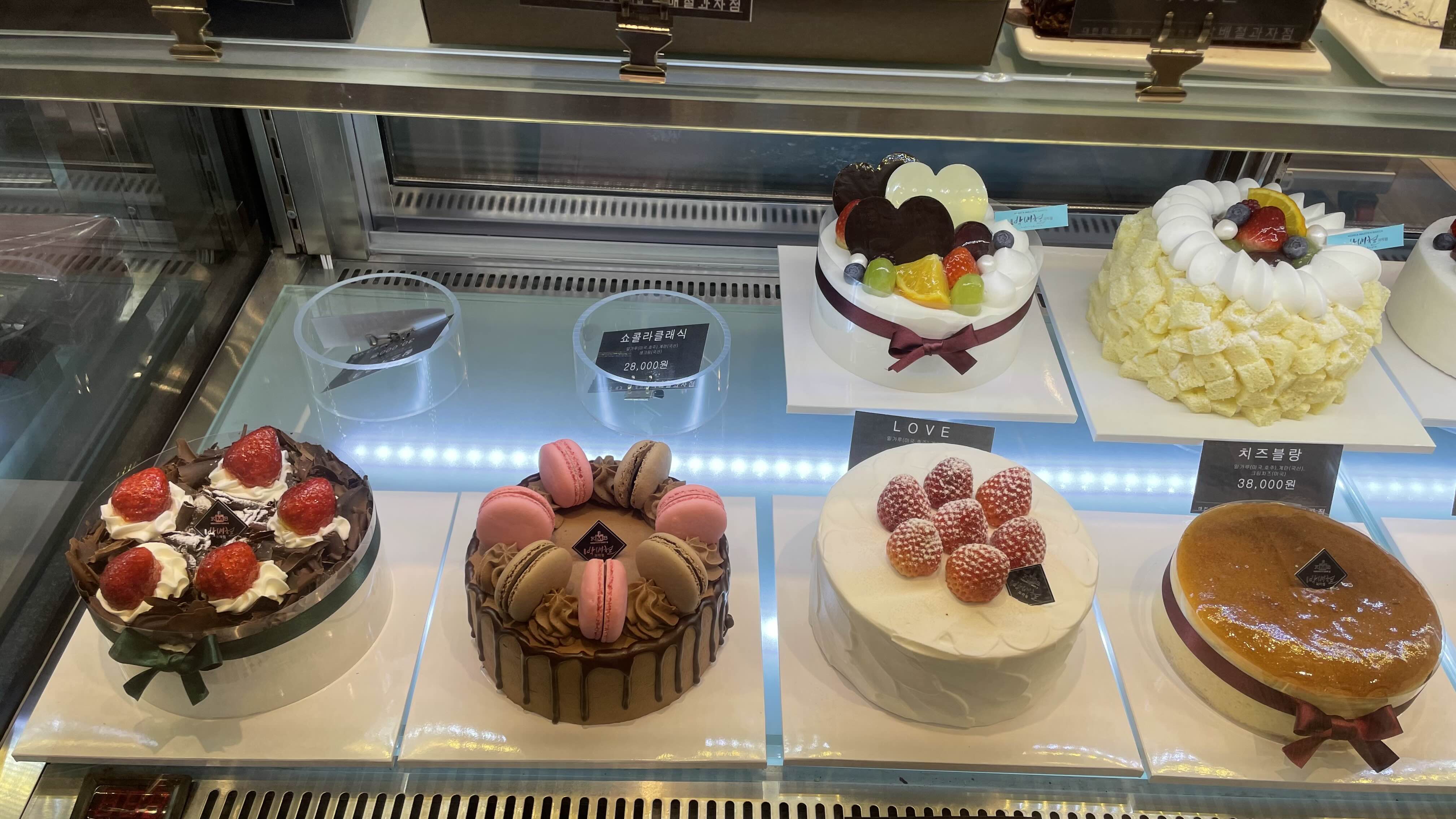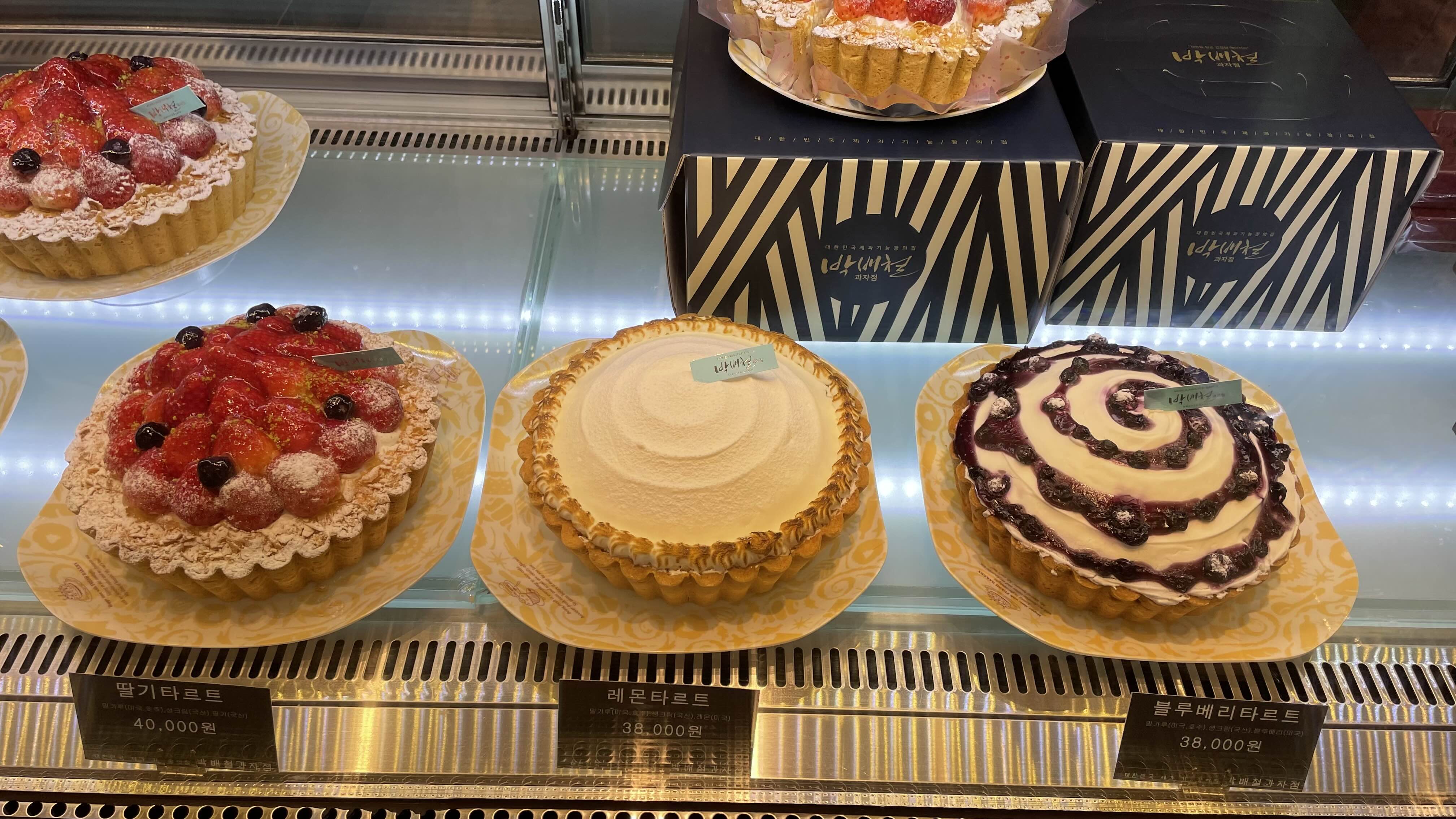 타르트 외에 케익도 여러 종류가 진열되어 있었어요.