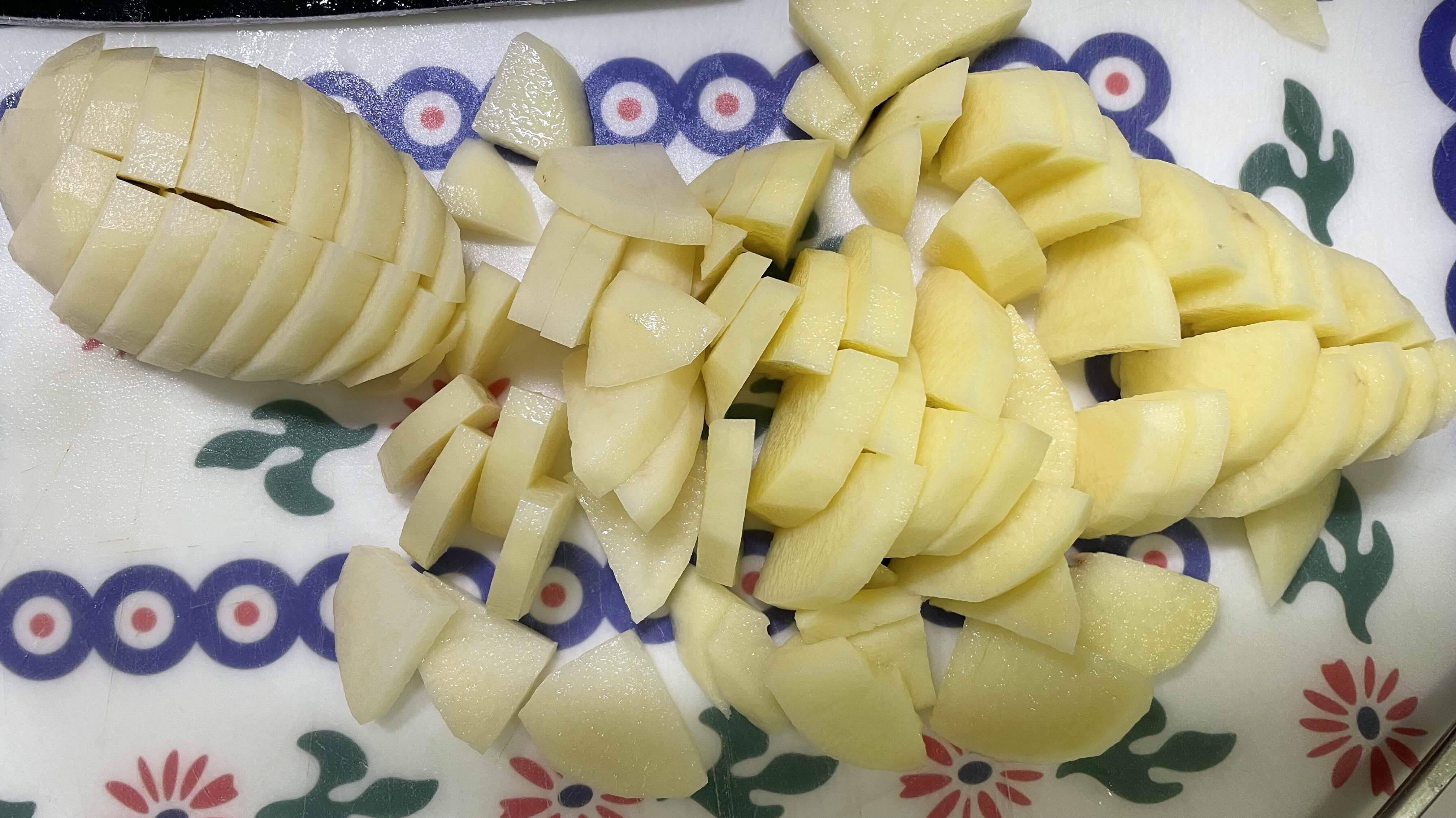 감자(2개)와 양파(1개) 는 나박나박 썰어주고,