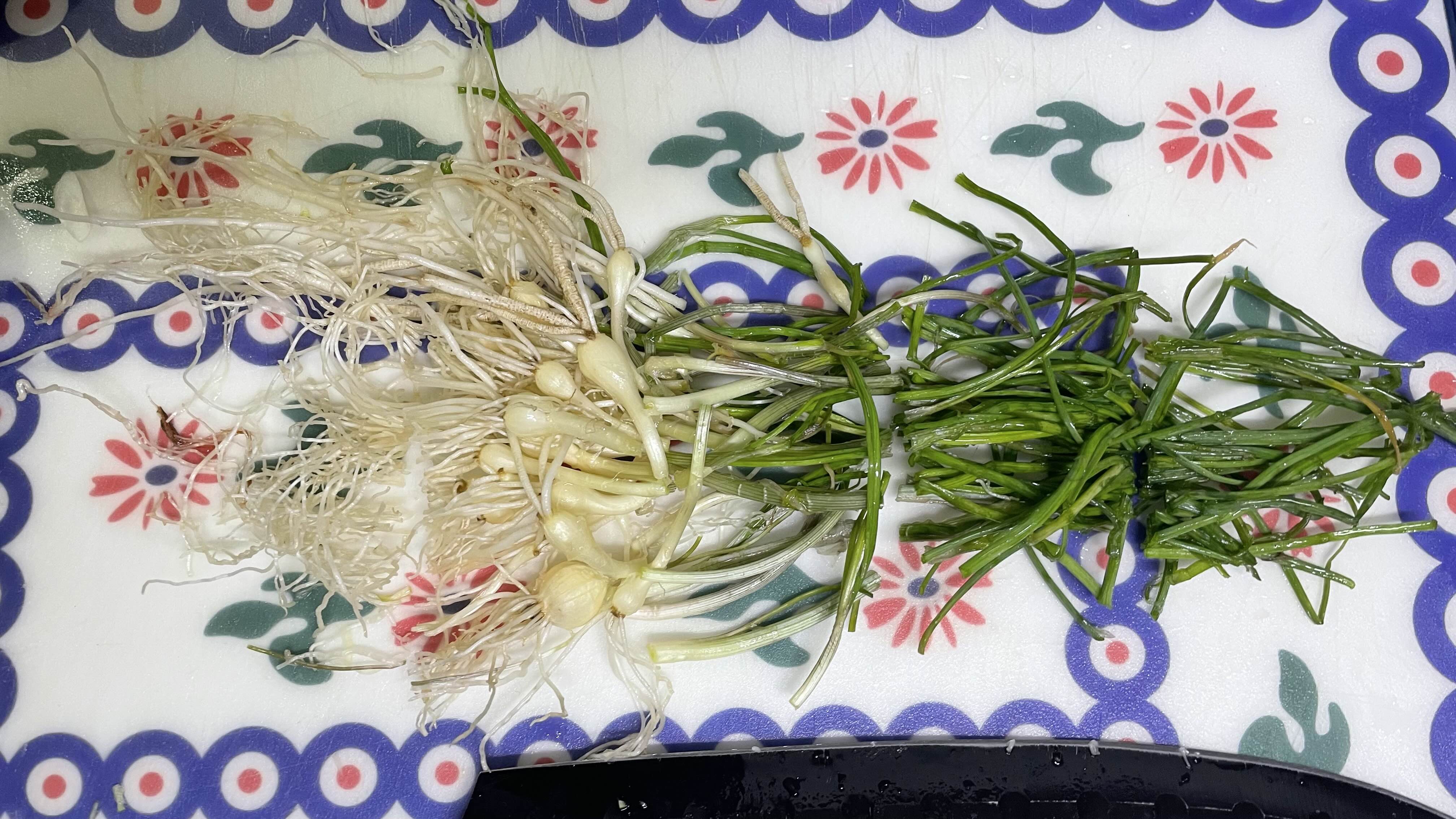 달래는 뿌리채 씻어서 4~5등분해서 준비합니다.