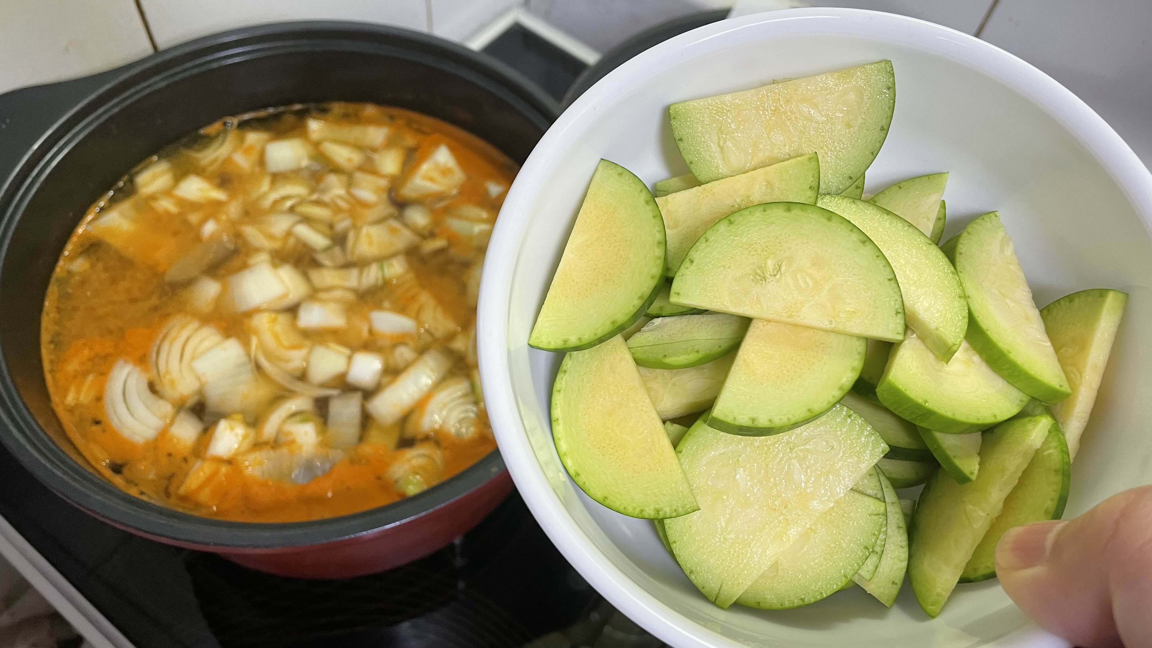 애호박(반개)은 반달 모양으로 썰어주시고,