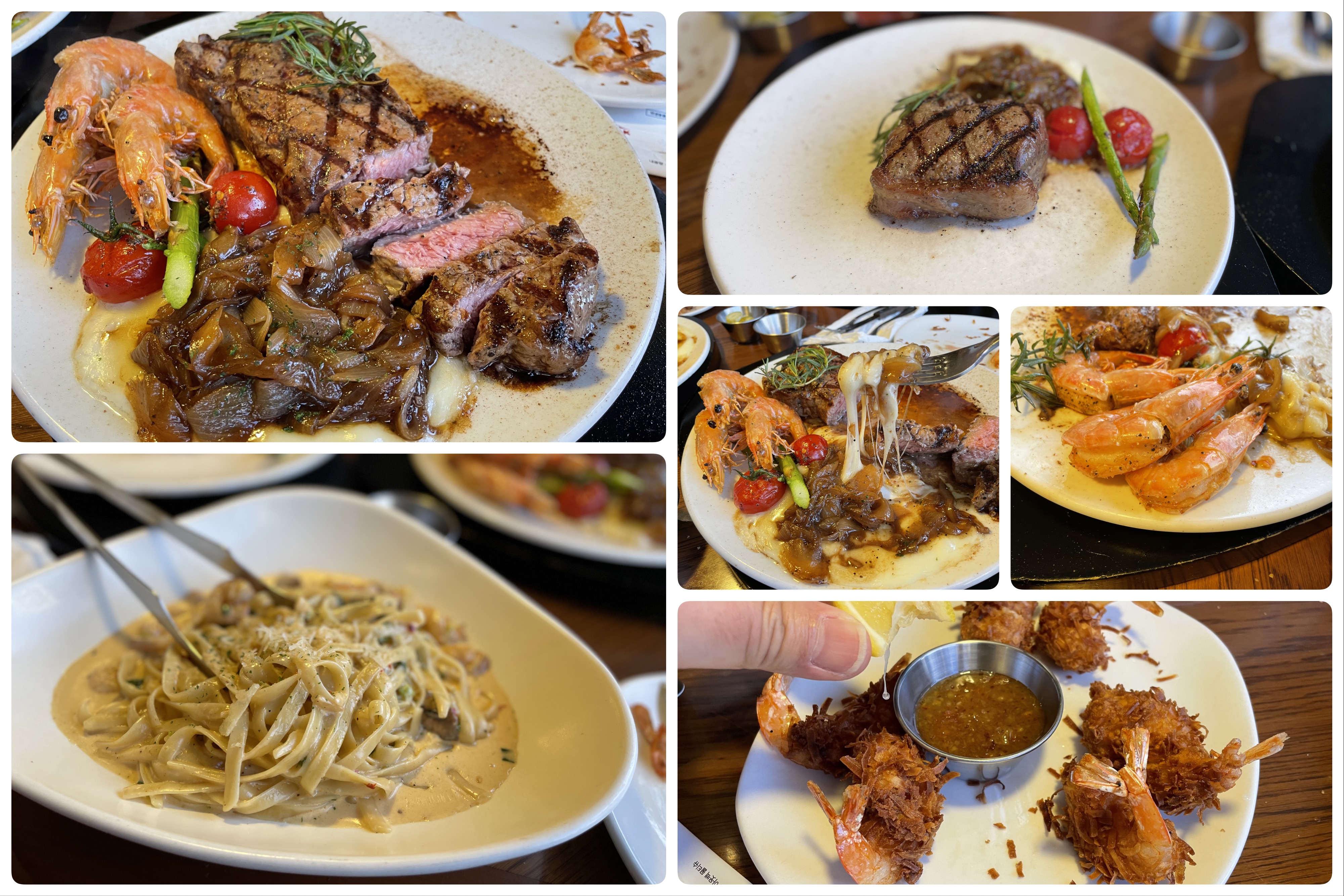 채끝등심과 새우튀김, 투움바 파스타 입니다.