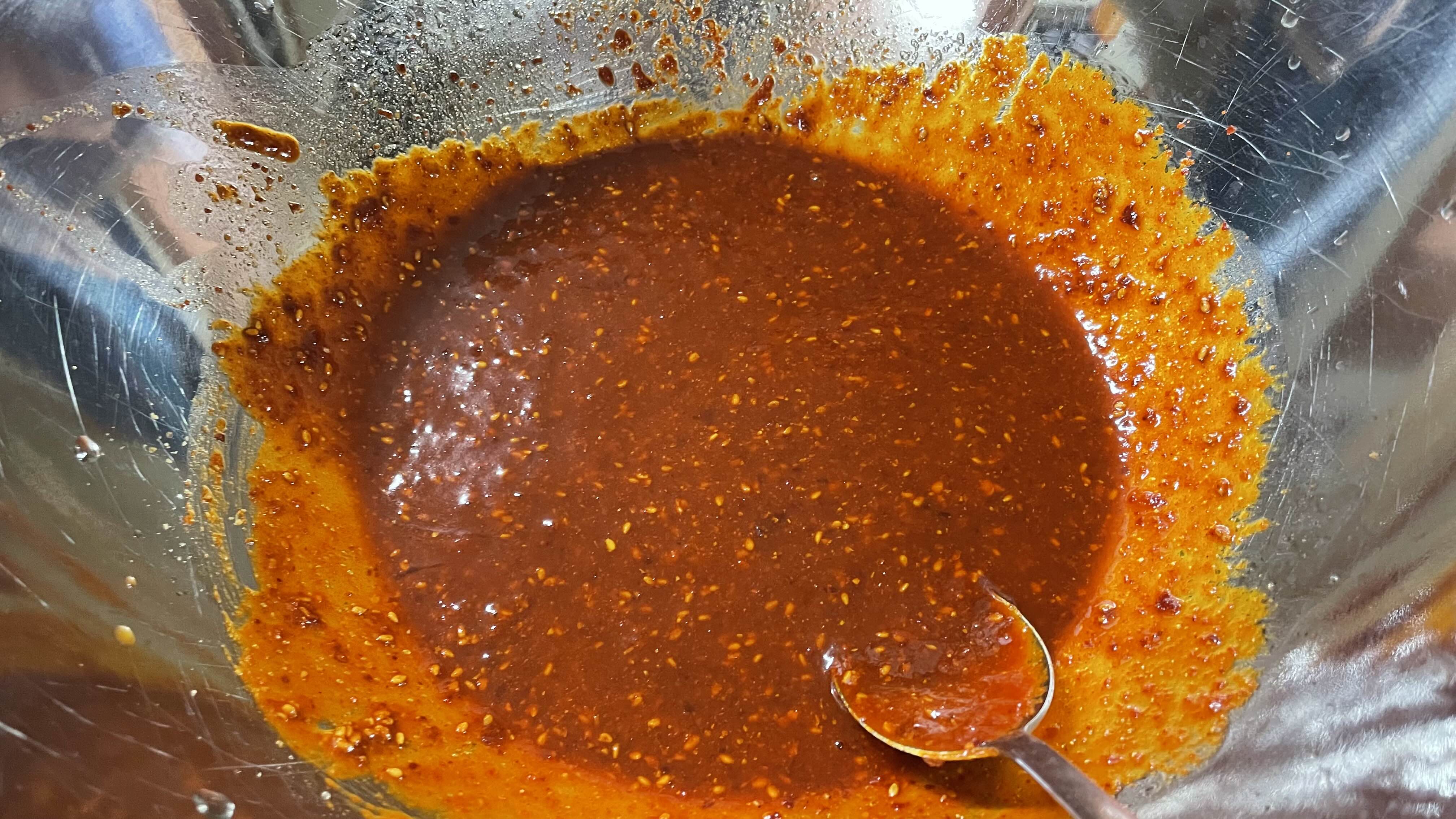 나중에 국수까지 삶아서 넣고 비빌 거니까 큰 볼에 양념을 바로 만들어 줍니다.