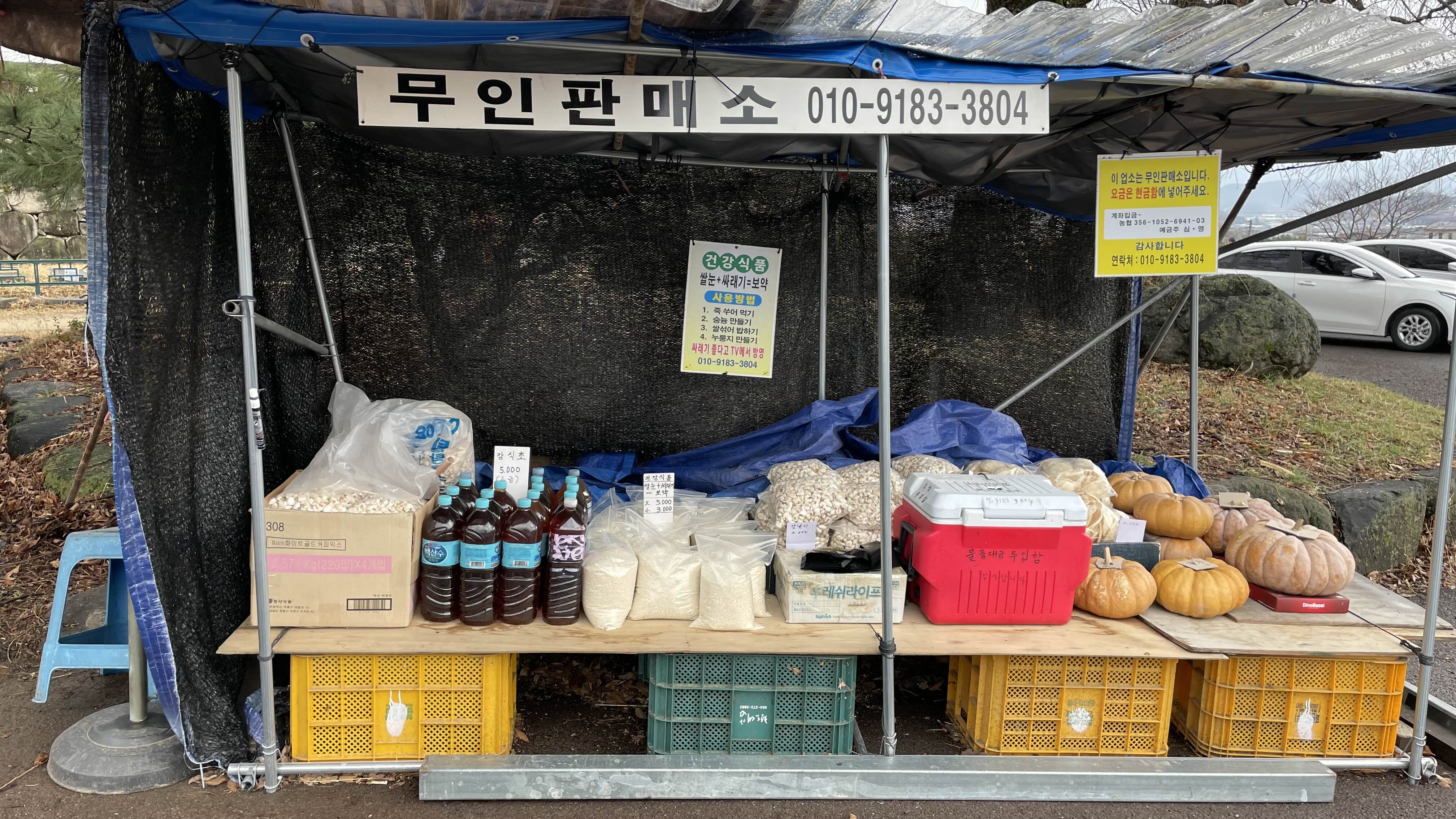 무인판매소에는 감식초(5,000원), 쌀눈+씨래기(5,000원), 강냉이(2,000원)에 판매하고 있으며,