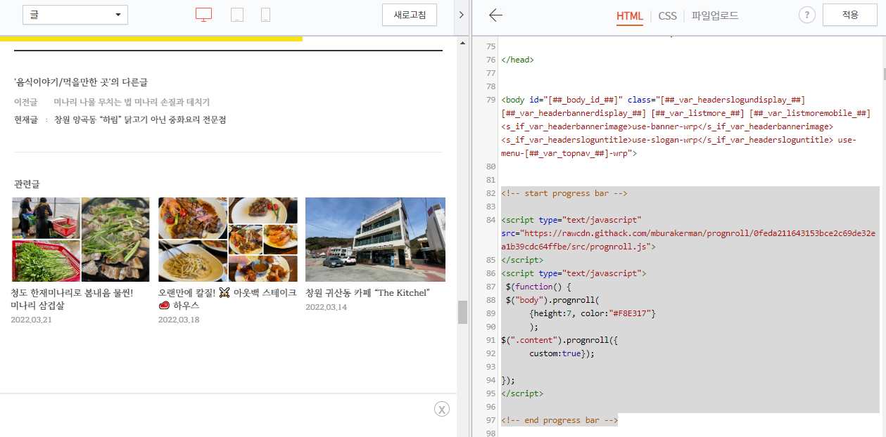 티스토리 블로그에 프로그레스 바(Progress Bar) 적용하기