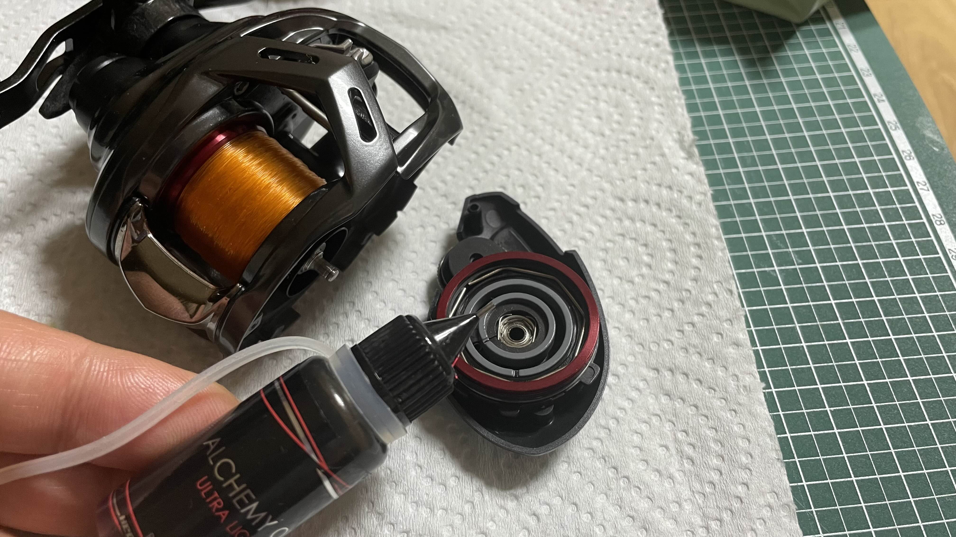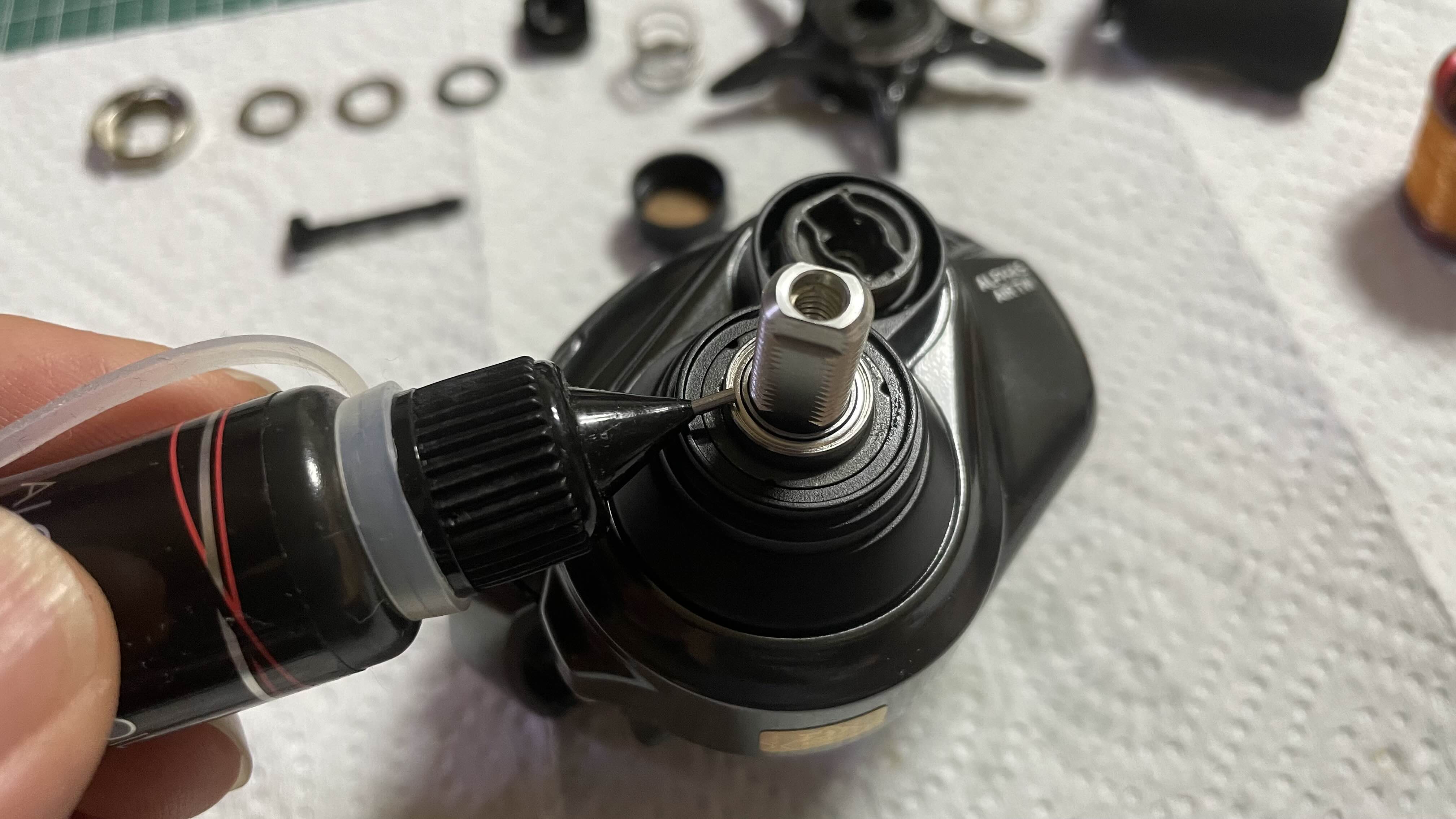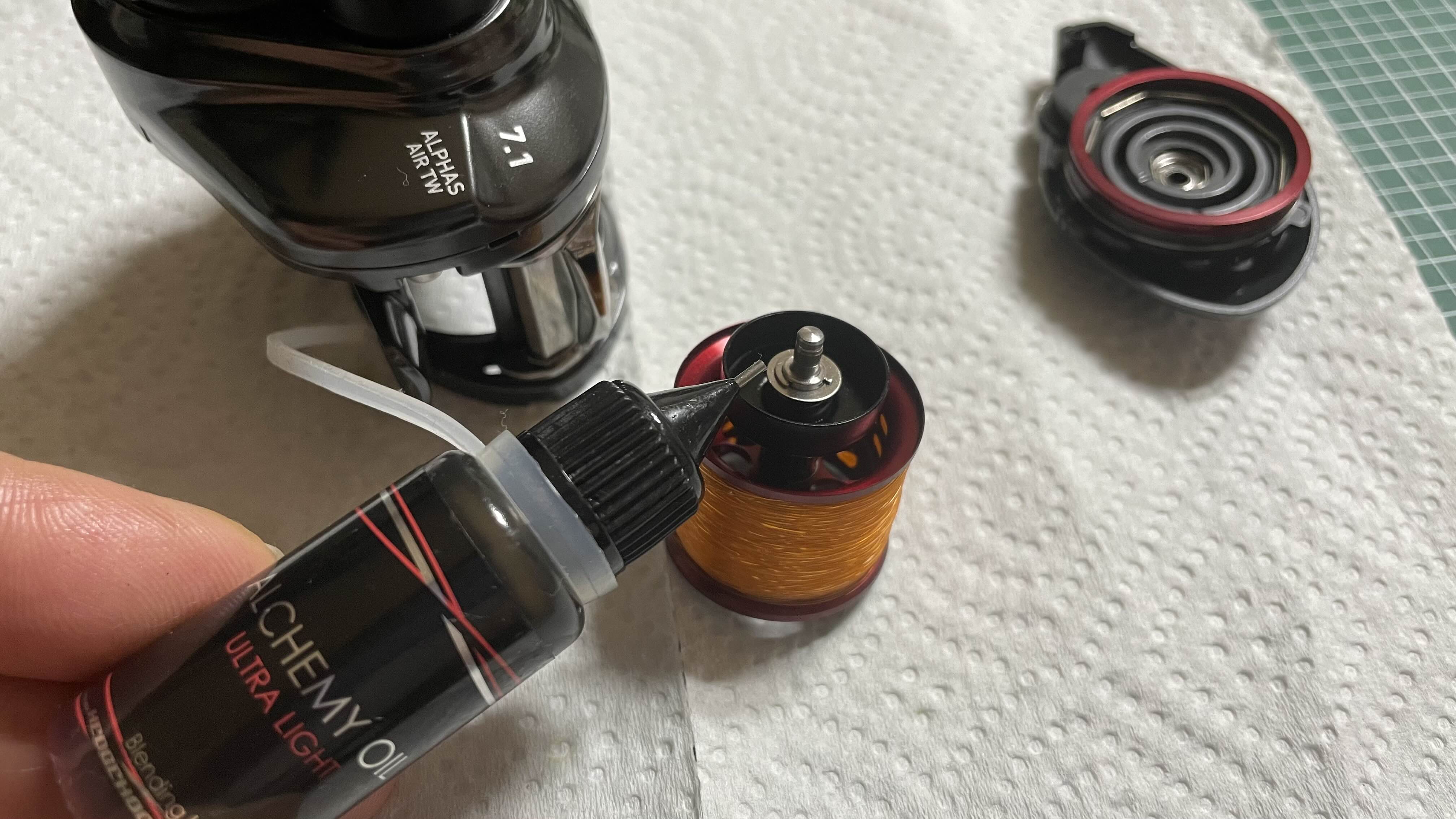 스풀 축 양쪽 끝과 베어링 부분에 한 방울 씩!