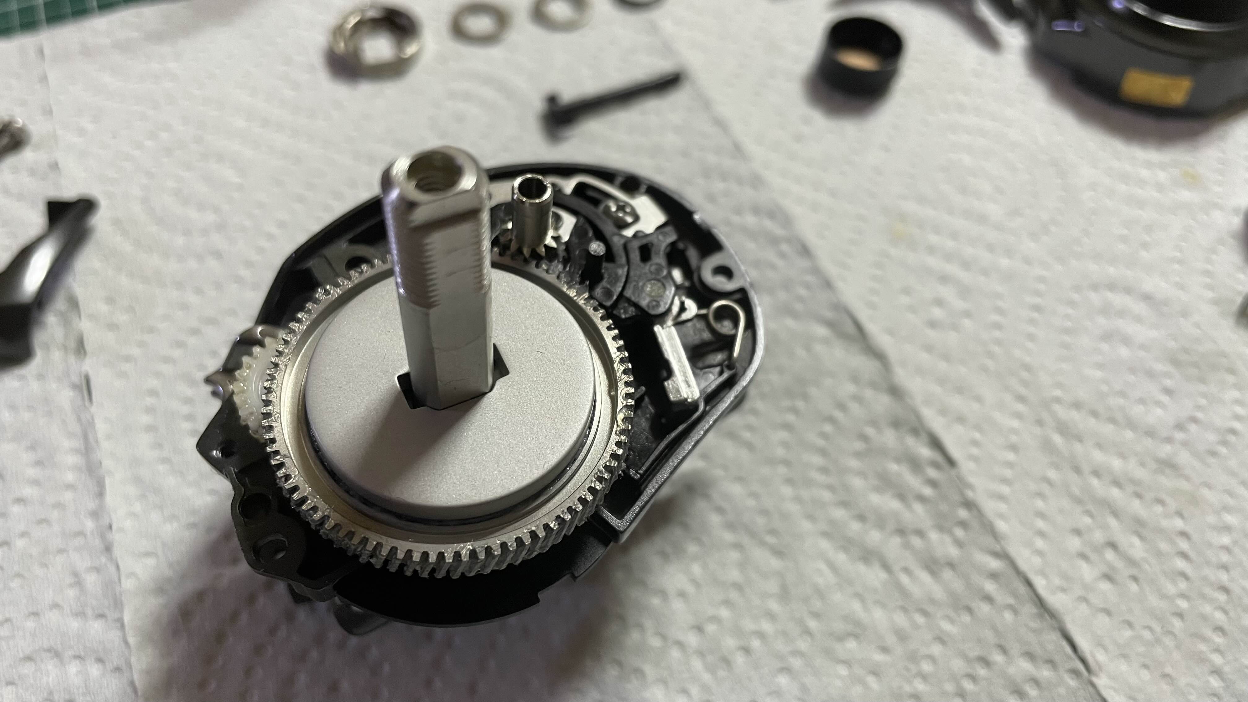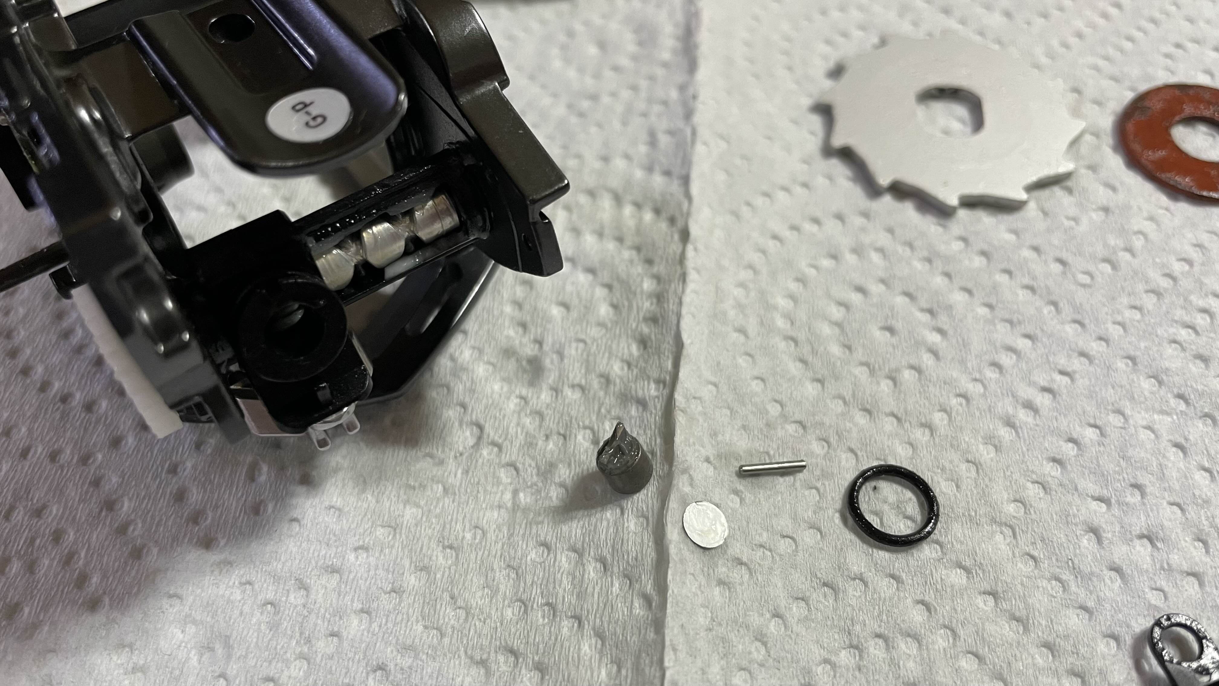 레벨 와인더 아래 틈으로 뾰족한 핀 같은 걸로 넣어서 고무 O링을 먼저 빼내 줍니다.