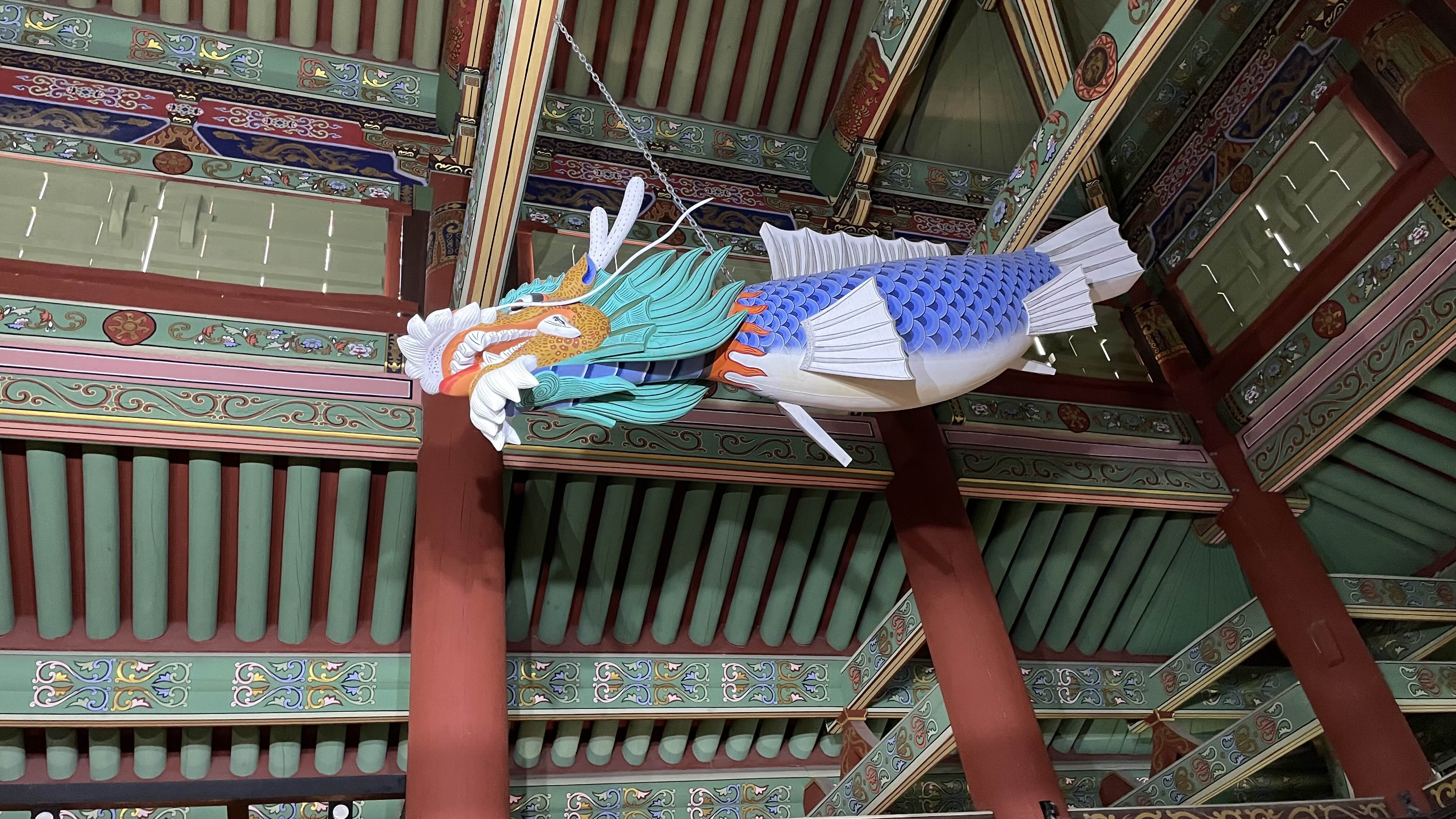 풍요와 자손번창, 출세의 상징인 물고기를 뛰어 넘으며 조화를 부릴 수 있는 초자연적인 능력과 부처님을 대신하여 항상 세상을 살피는 신비로운 영물이다.