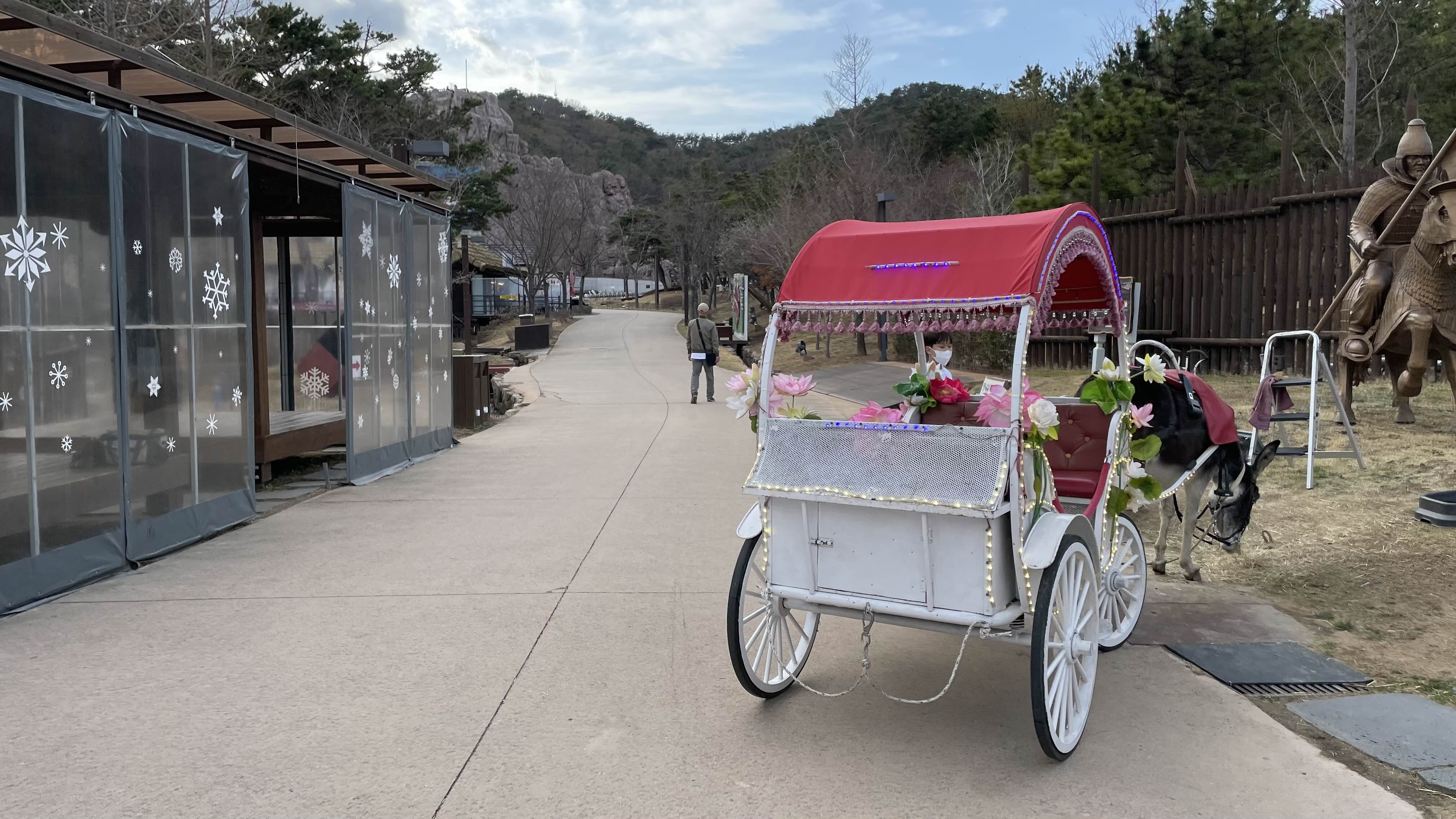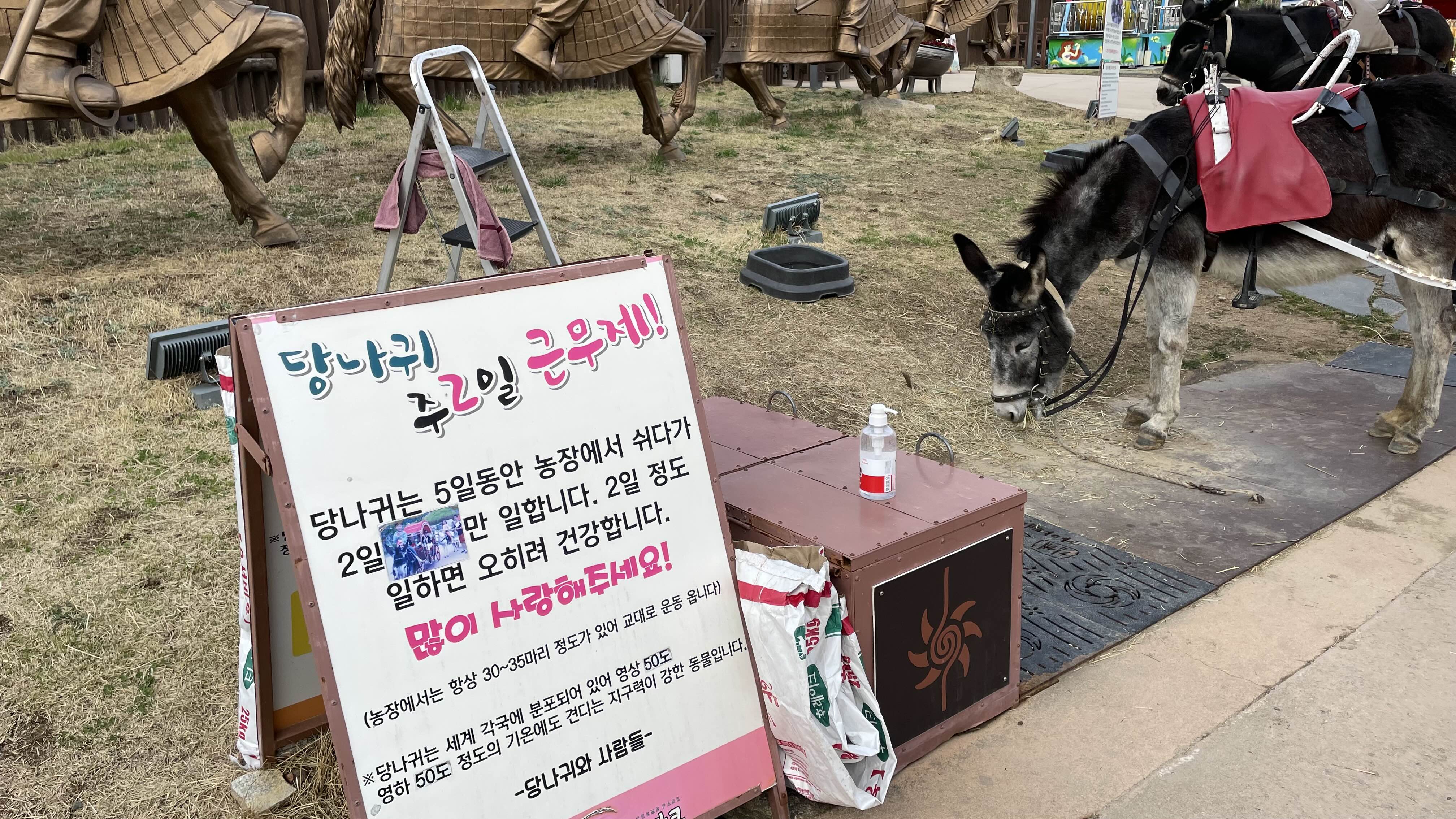 가야무사 어드벤처 입구에는 두 대의 당나귀 마차가 있습니다.